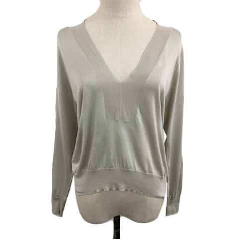 デプレ DES PRES トゥモローランド セーター ニット Vネック プルオーバー 無地 シルク 長袖 1 グレー ベージュ レディース