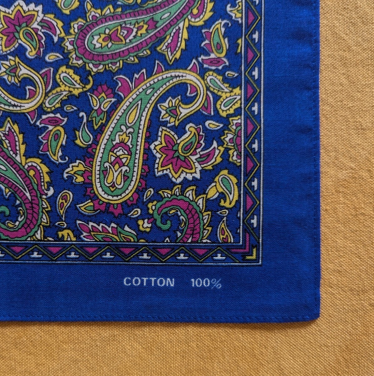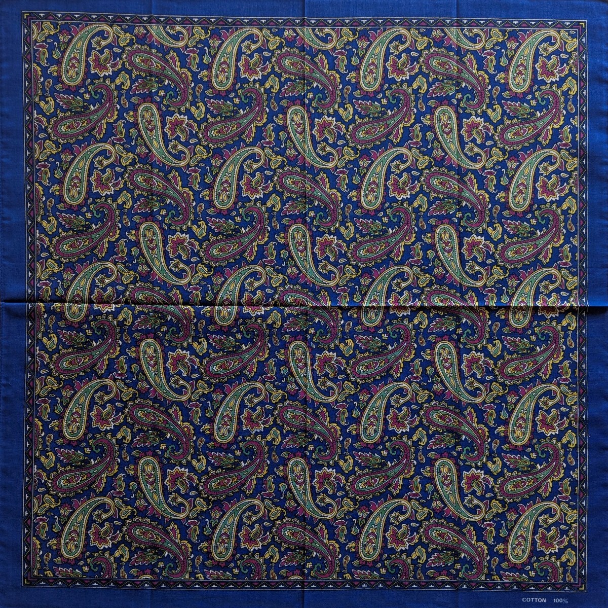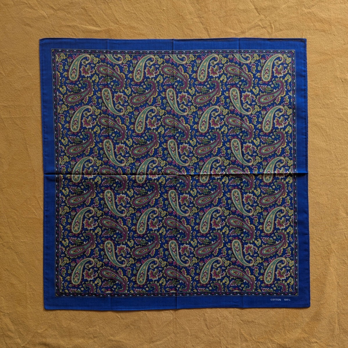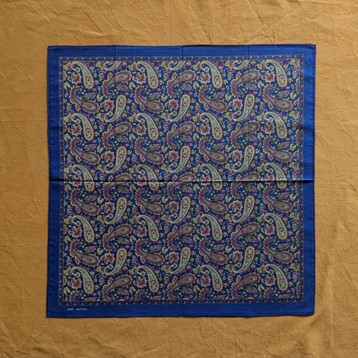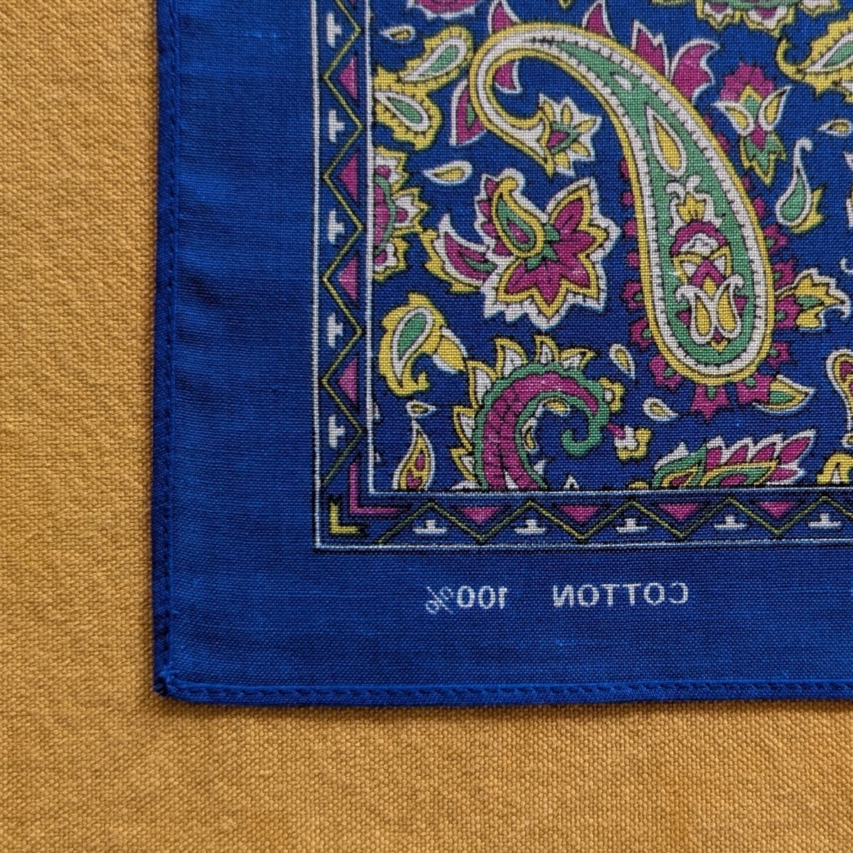 ペイズリー 柄 バンダナ ハンカチ COTTON100% 綿 コットン サイズ53cm×54cm 青 ブルー 服飾小物 美品 デッドストック 未使用保管品