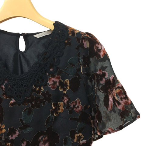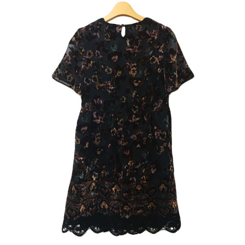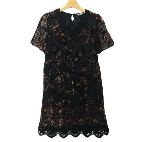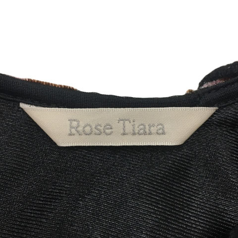 ローズティアラ Rose Tiara ワンピース Aライン ミニ レース 総柄 マルチカラー 半袖 5 黒 茶 ブラック ブラウン レディース