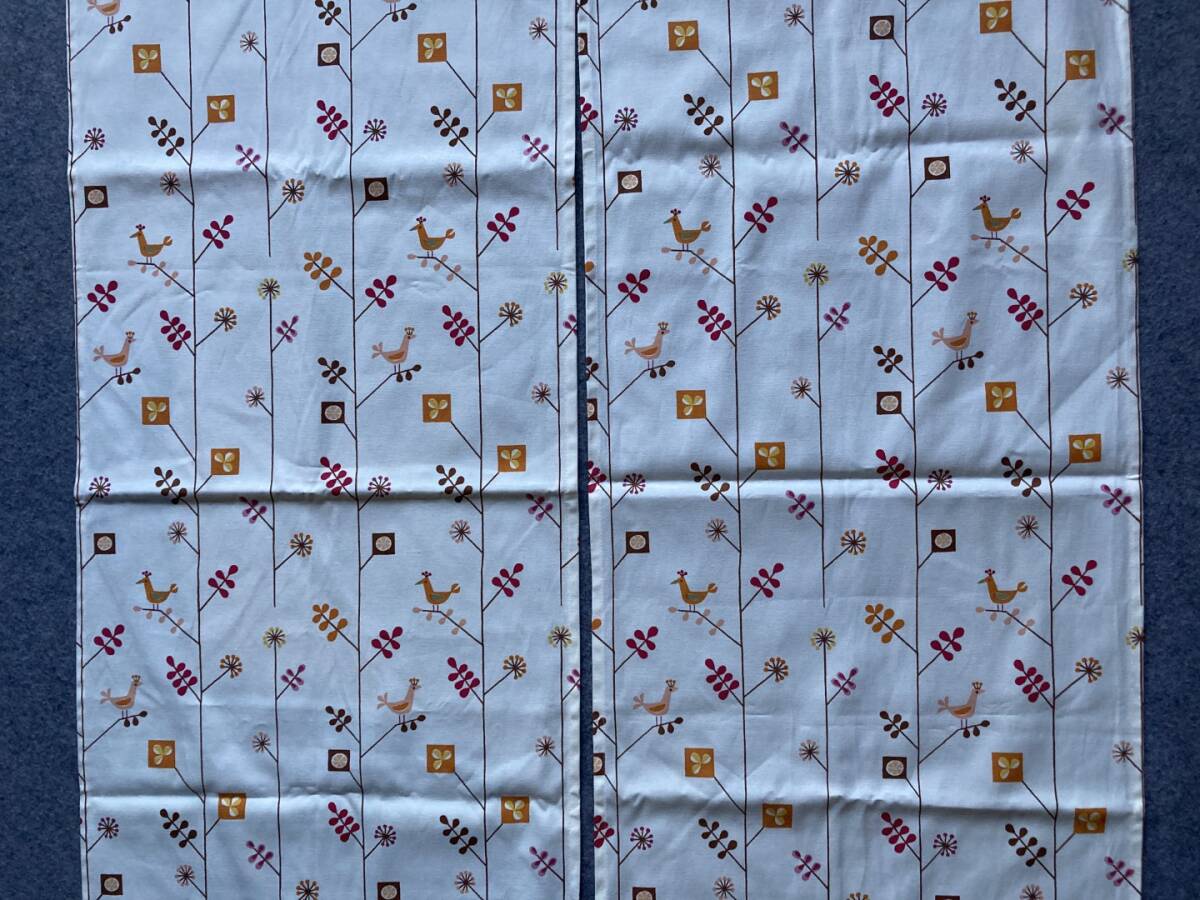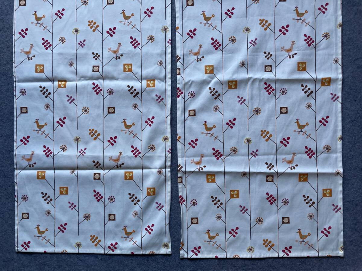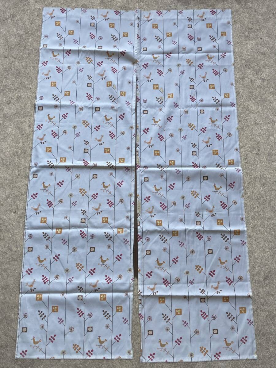 送料込 即決 北欧柄 川島織物 セルコン vita 暖簾 のれん オレンジ 88cm×150 植物 鳥 バード とり