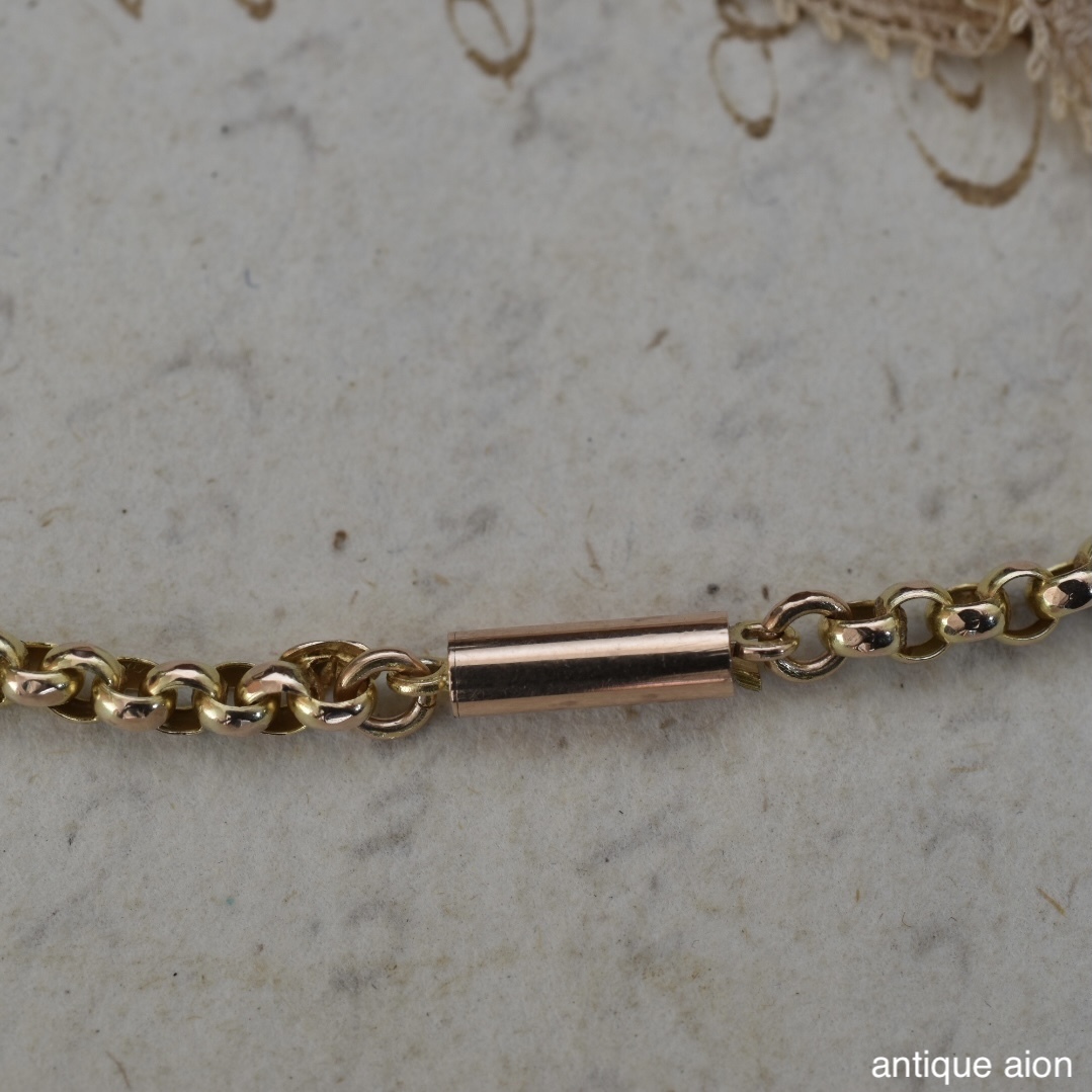 英国アンティーク 19世紀後期頃 9ctゴールド ベルチャーチェーンネックレス バレルクラスプ