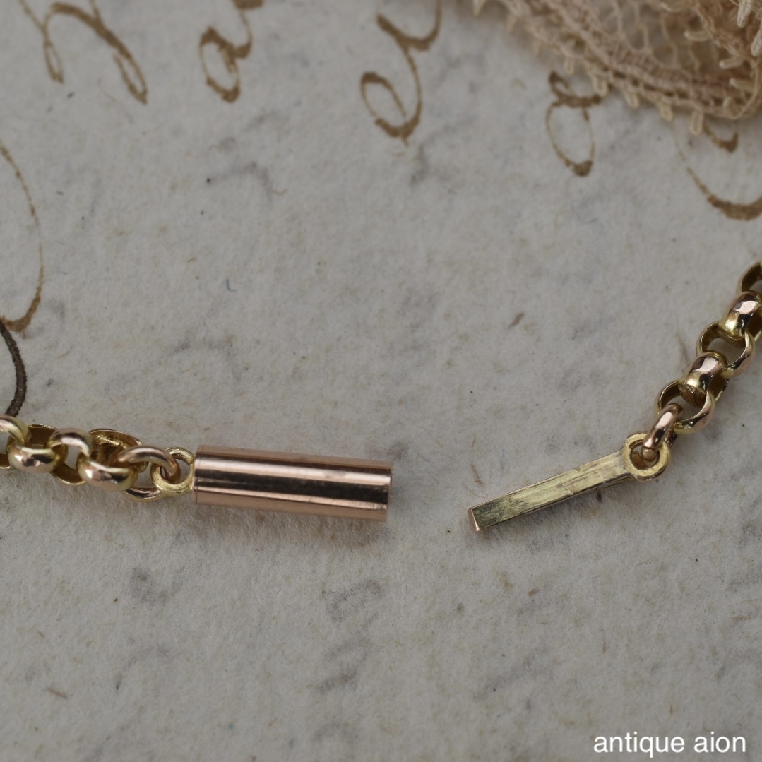 クラスプにはクラシカルなバレル型が用いられ、アンティークらしい風格と実用性を兼ね備えています。