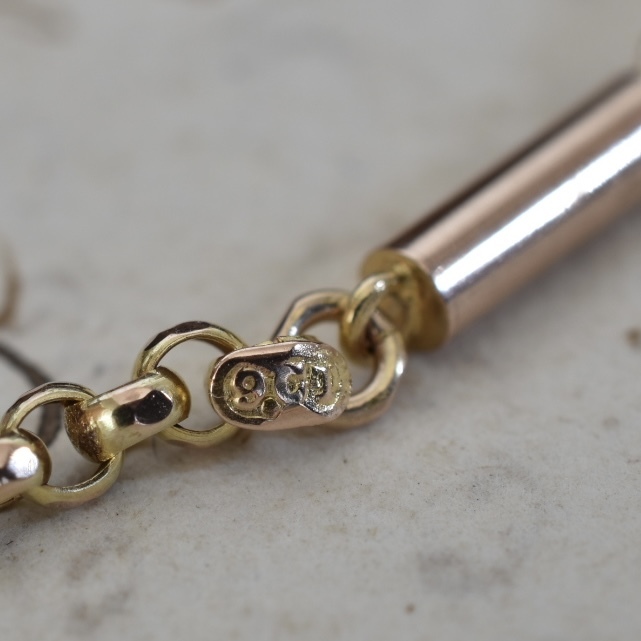 留め具部分には「9ct」の刻印を確認でき、確かな9金ゴールドであることが保証されています。