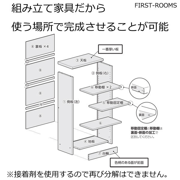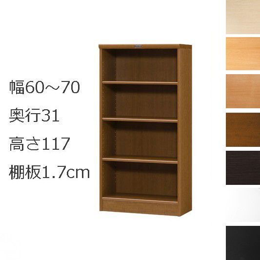 【棚板枚数】3枚【幅の内寸】全体の幅サイズから3.6cmを引いた寸法となります。※側板(縦の両脇の板)の厚みは1.7cm棚は移動可能で穴から穴までの高さ(ピッチ)は3cm【色・主材】12色・プリント紙化粧繊維板【生産国 】JAPAN※お客様組み立て商品です。(組み立て家具です)【お詫び】特注のため、お届けまで10~14日かかります。送料込ですが、北海道・沖縄・離島は別途送料がかかります。【井崎店長から一言】特別注文のため、ご注文後のサイズの変更、お取り消しがお受けすることが出来ません。サイズの確認を十分にお願いいたします。【お支払い方法について】>申し訳ございませんが、代金引換以外をお選びください。プラスドライバー1本で組み立てられます。