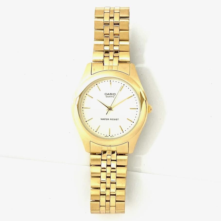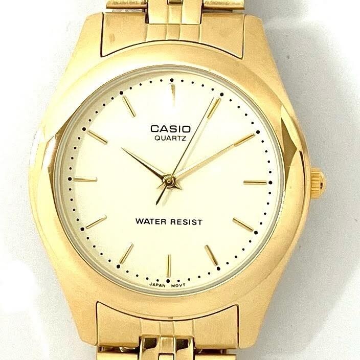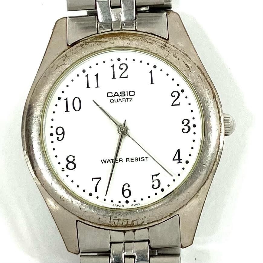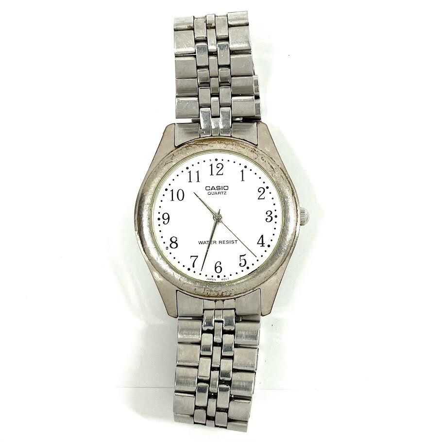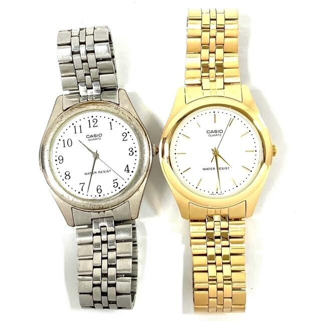 仙10【2点】CASIO カシオ MTP-1129 腕時計 クォーツ QZ ホワイト文字盤 アナログ まとめ売り ゴールドカラー シルバーカラー