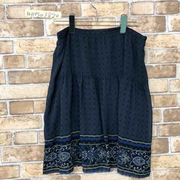 IENA イエナ レディース 裏地 ボタニカル フラワー 総柄 エスニック切替 フレア シフォンスカート 40 ネイビー