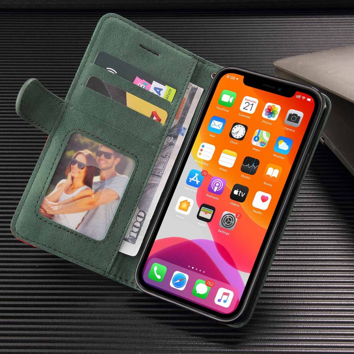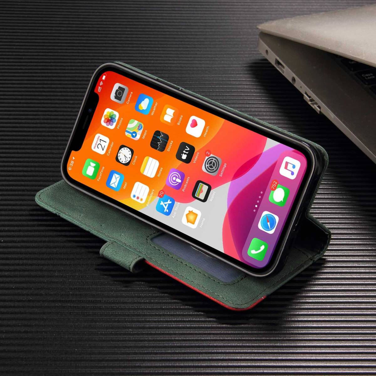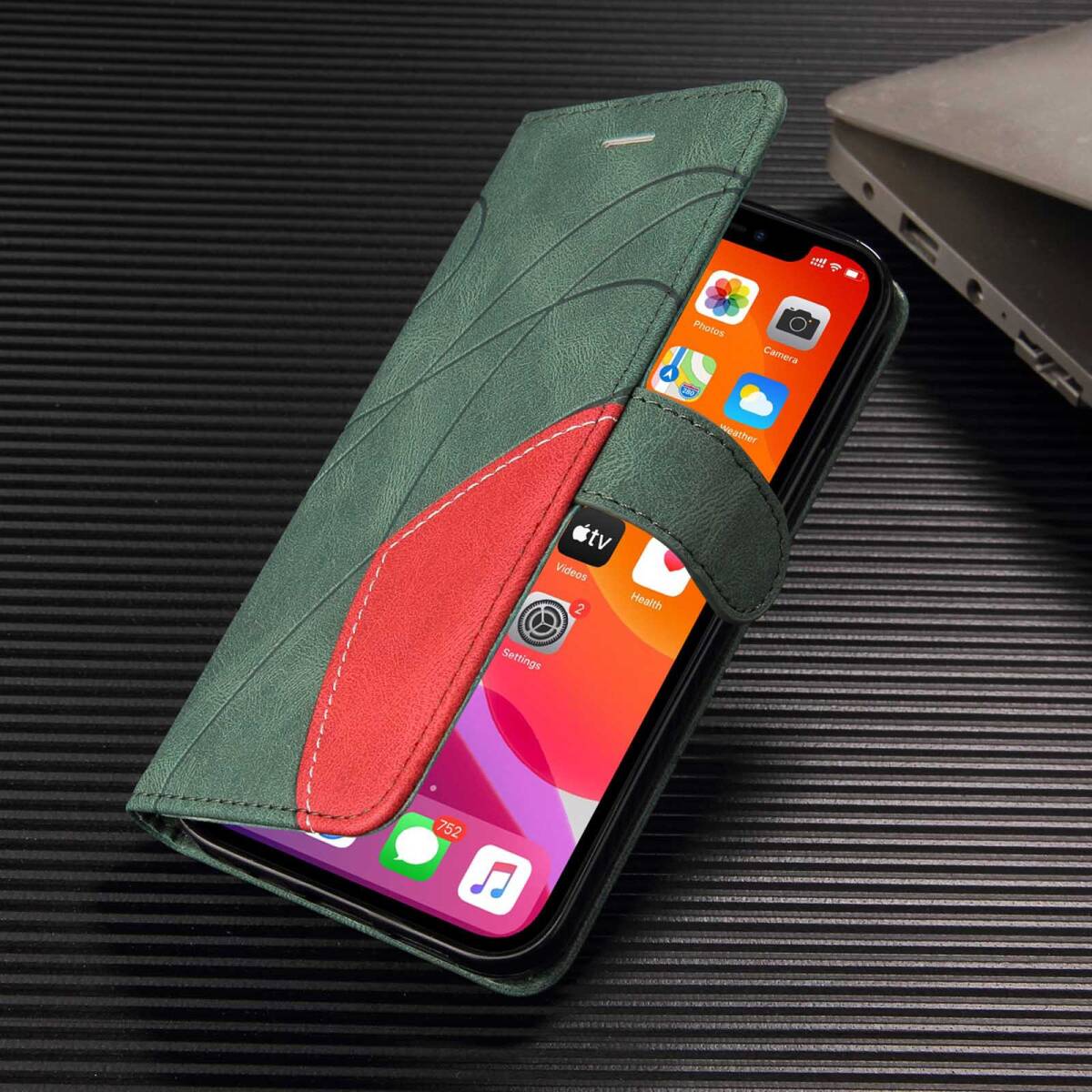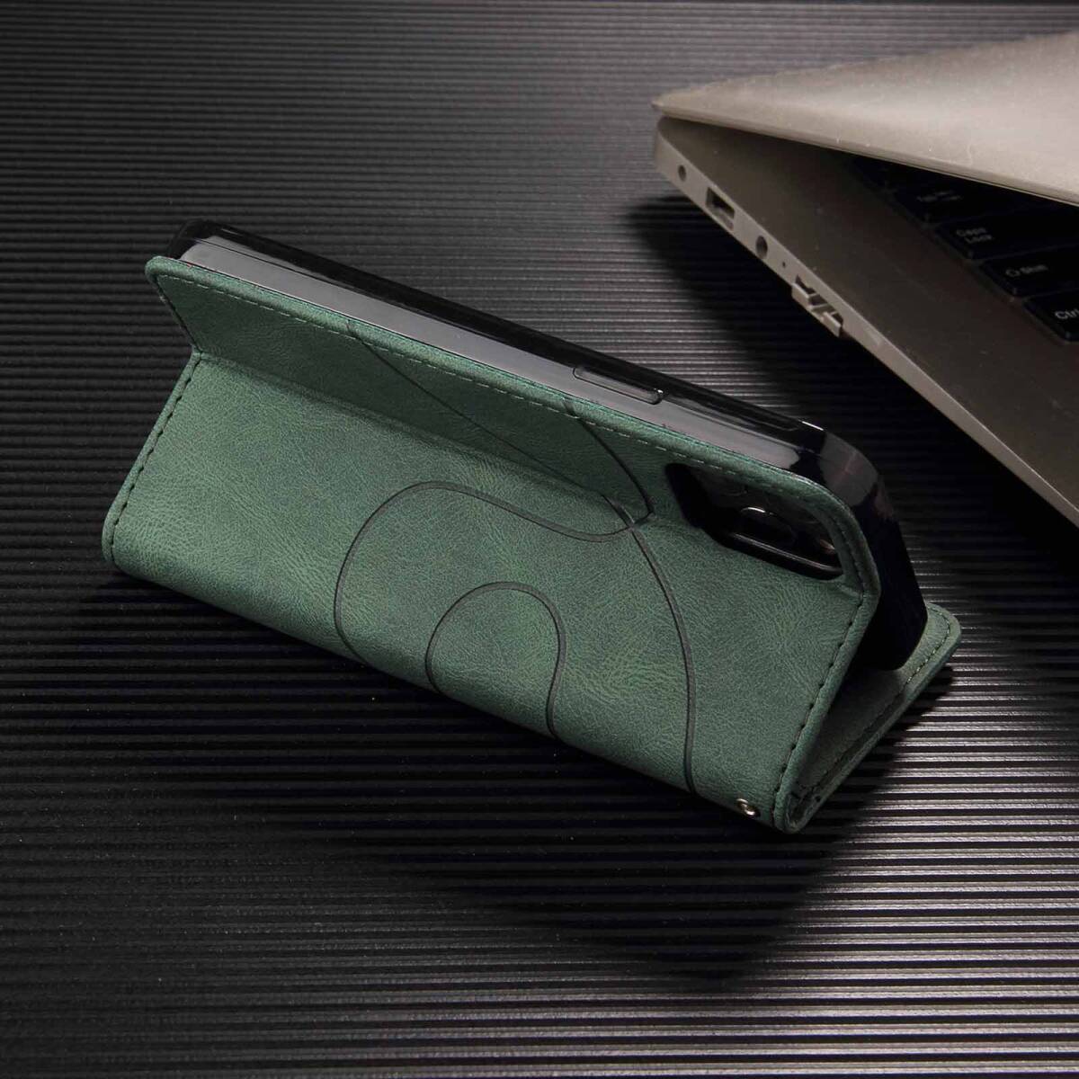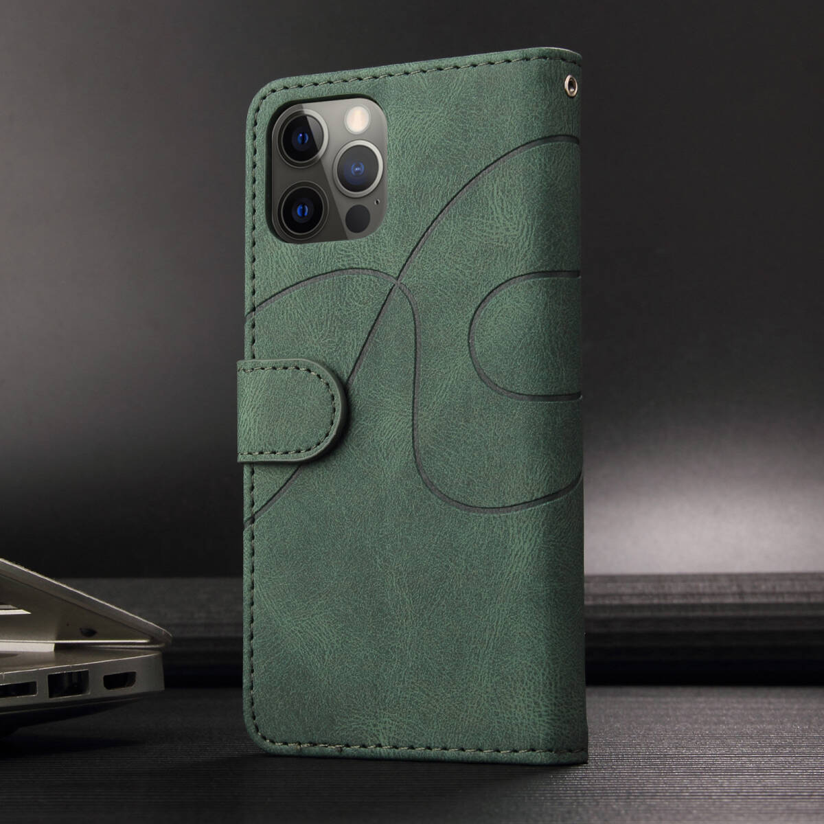 iPhone 16e (SE4) ケース スマホ 手帳型 カードケース ツートンカラー 曲線模様 幾何学 グリーン 緑色 緑 裏止め アイフォン