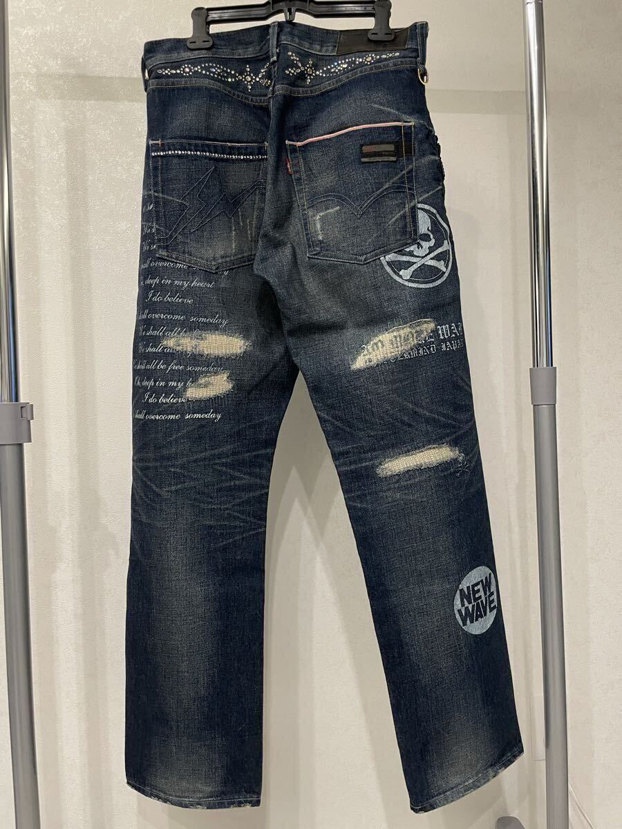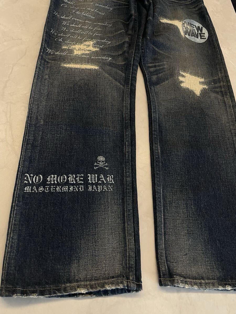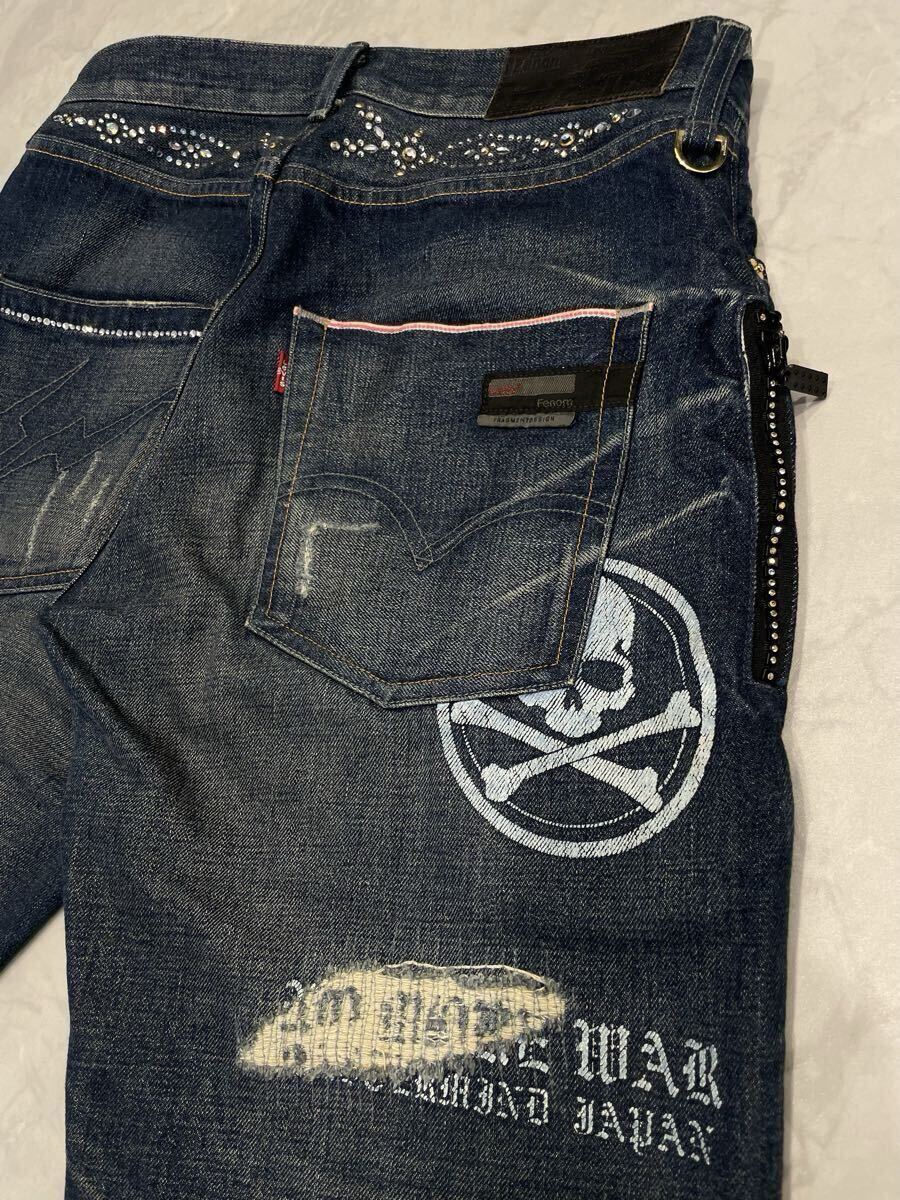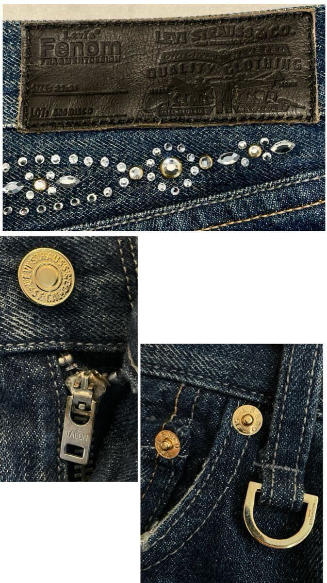 Levi's fenom× mastermind Japan× fragment design MM505-0003 disco スワロフスキーのクリスタルカラー ダメージ加工 デニムパンツ。