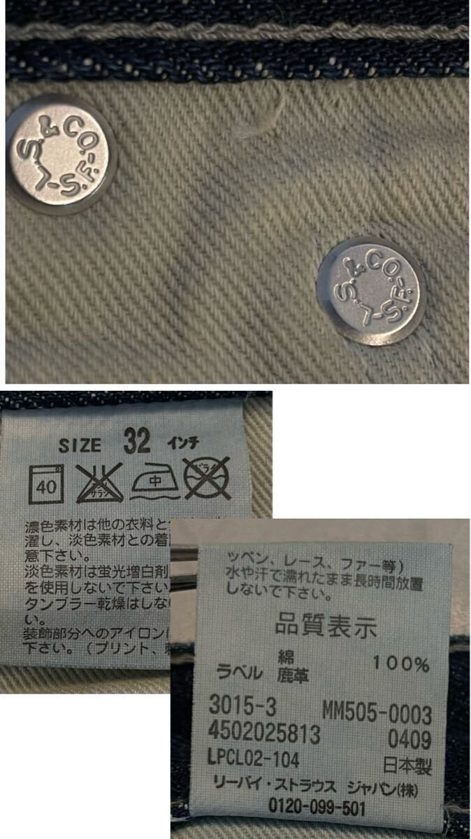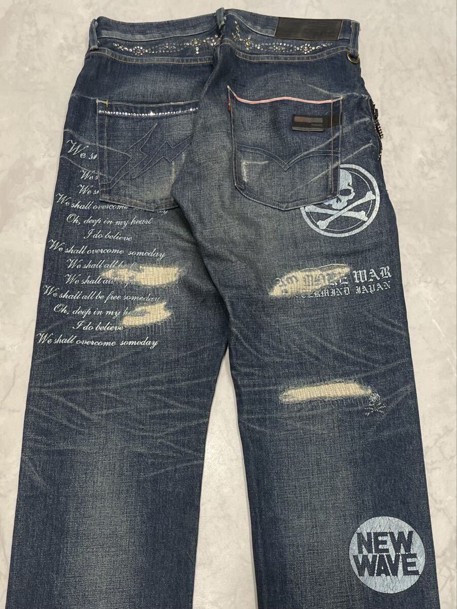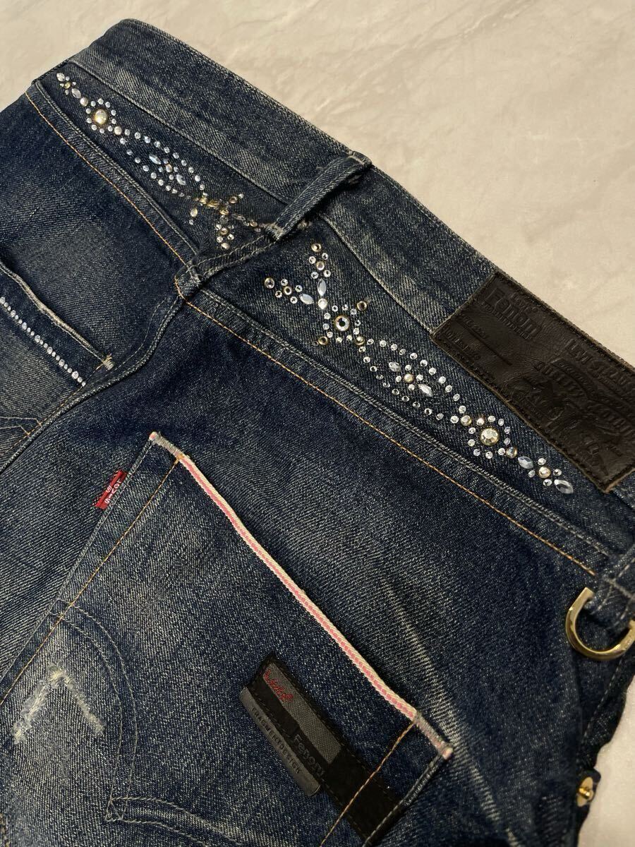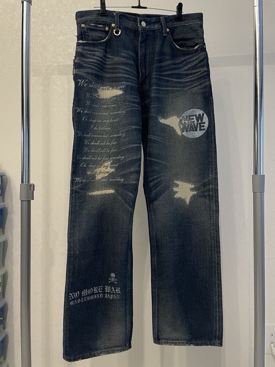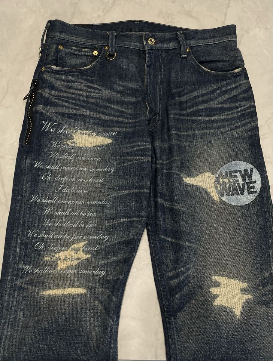 Levi's fenom× mastermind Japan× fragment design MM505-0003 disco スワロフスキーのクリスタルカラー ダメージ加工 デニムパンツ。