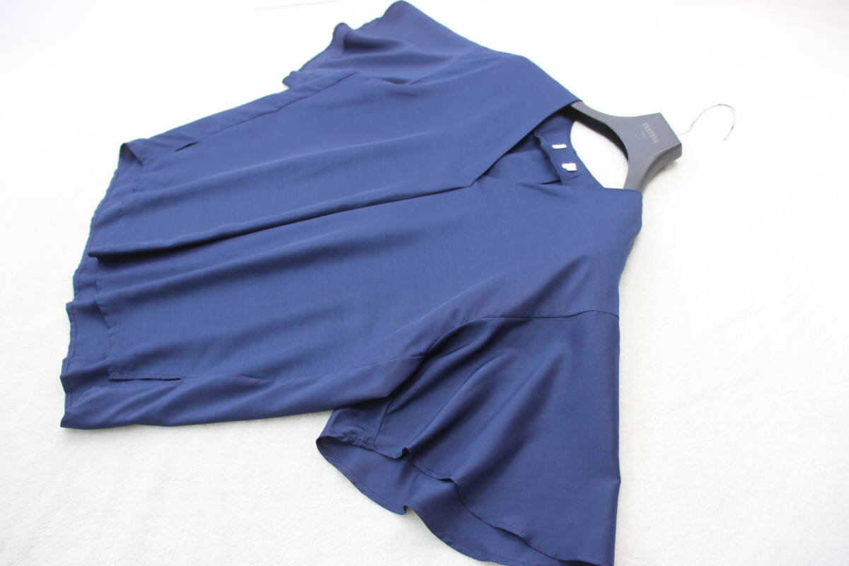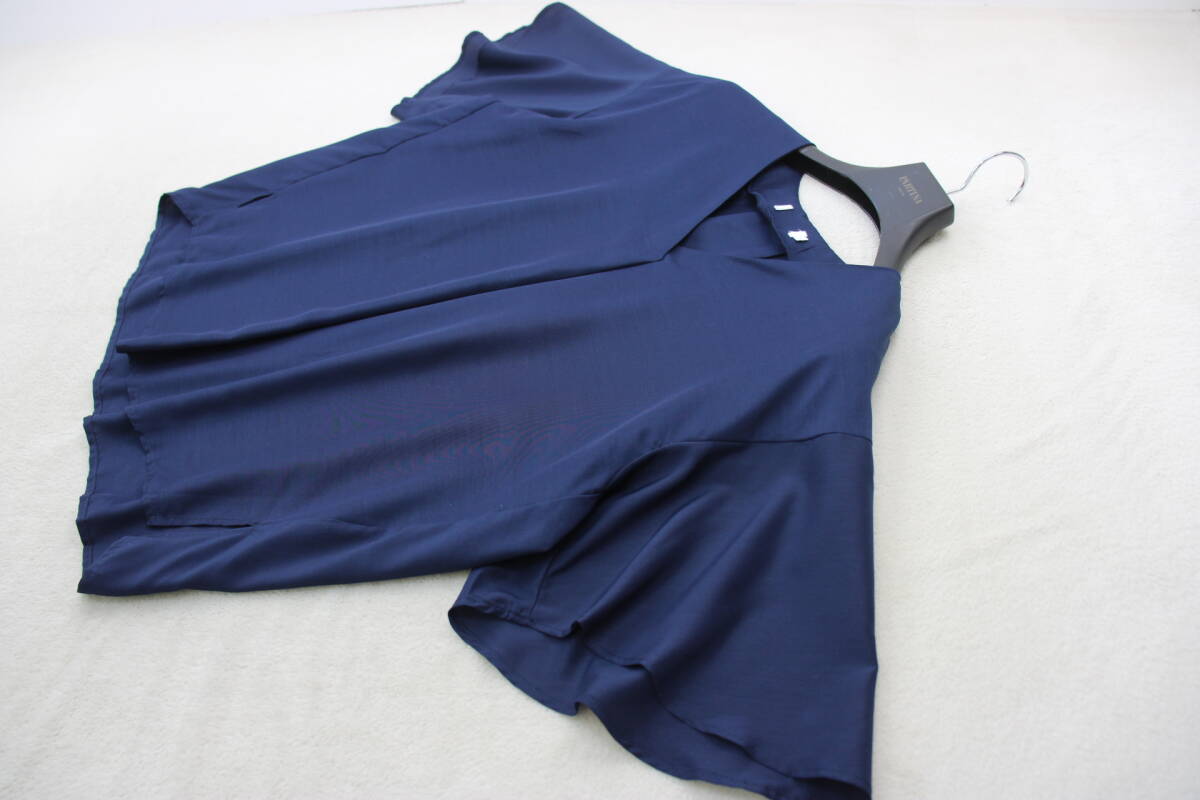 4-685 新品 Vネックブラウス ネイビーMサイズ
