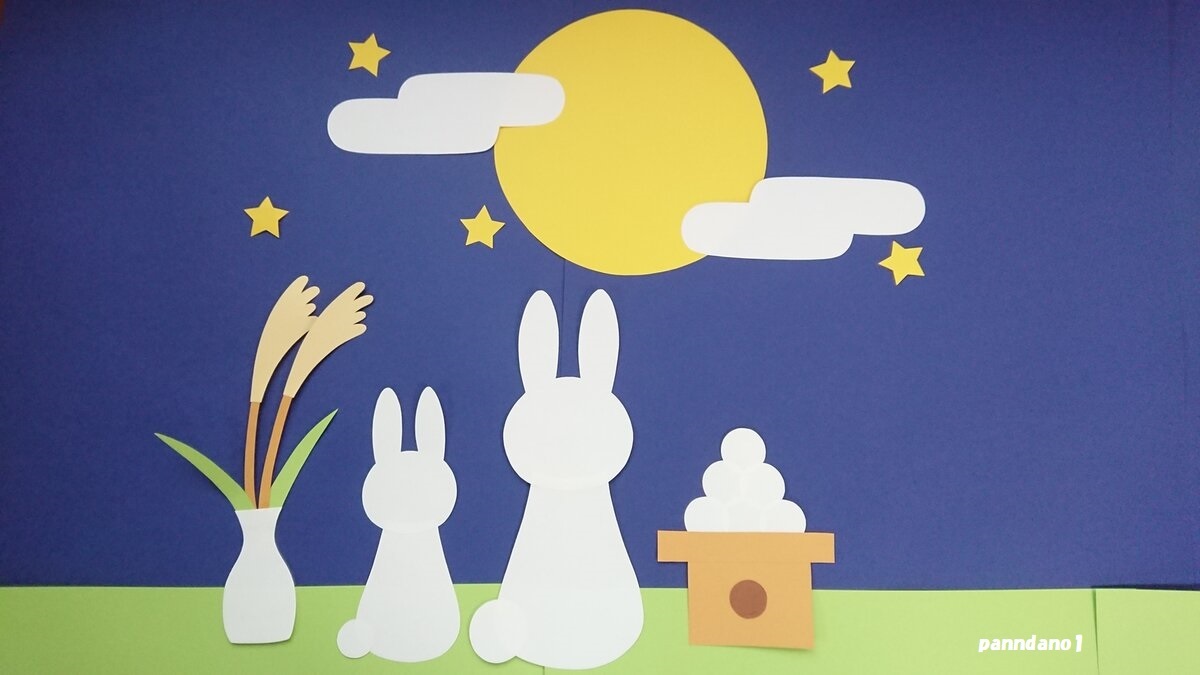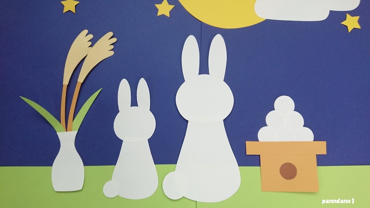 画用紙で作ったお月見の壁面飾りです(*^-^*)♪
