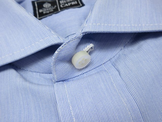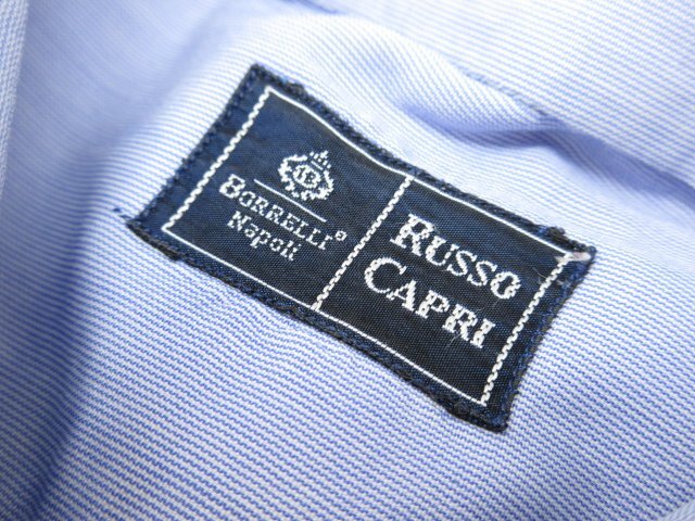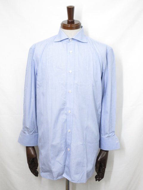 【ルッソカプリ RUSSO CAPRI】 コットン100% ワイドカラー マイクロストライプ柄シャツ (メンズ) size39 水色×白 イタリア製 ◇33MK5973