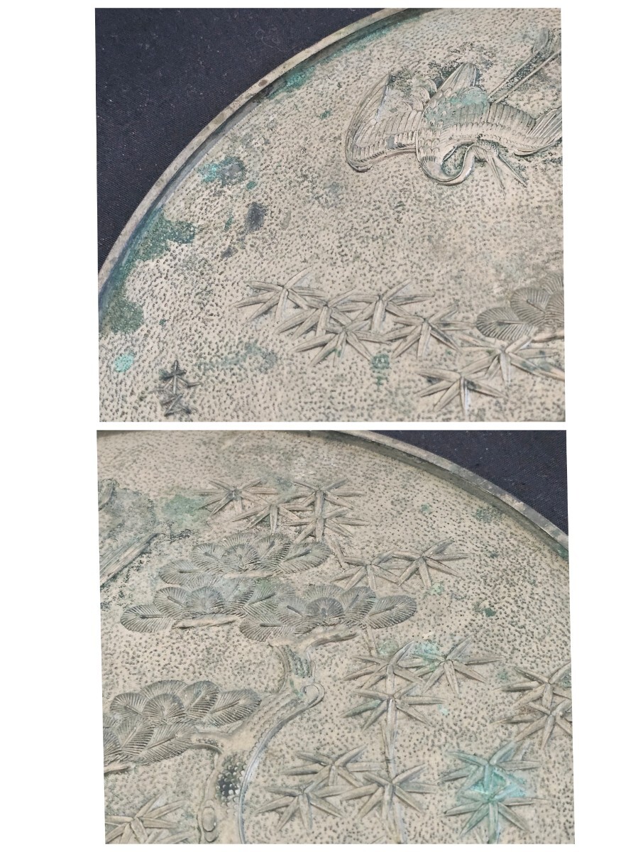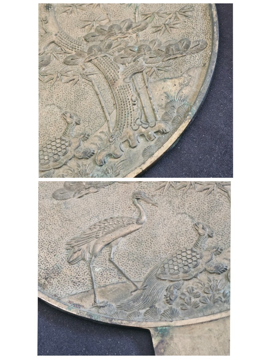 | 商品説明 | アクセスいただきありがとうございます。 説明文、自己紹介欄を全てお読みいただき納得されたうえで、ご入札お願いいたします。 発送など業務のストップに関するお知らせは自己紹介欄にアップいたします。 特にお急ぎの方はご注意下さい。 なお、画像にあるものが全てです。 福井県の旧家よりの初荷です。 刻印意匠鮮明です。 緑青あります。 鏡面残るもスレ、汚れあります。 状態は画像でよくご確認ください。 寸法 直径 約21cm 全長 約31cm 重量 約916g