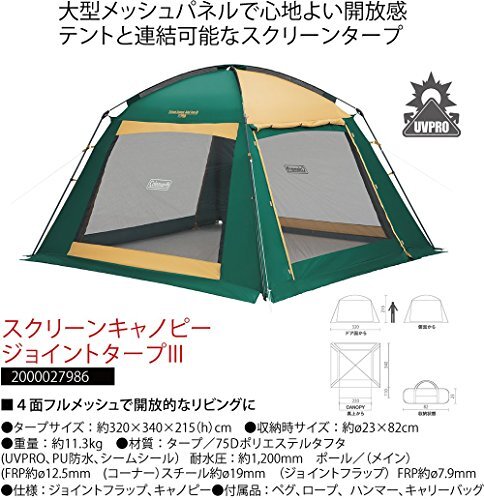 大型メッシュパネルで心地よい開放感テントと連結可能なスクリーンタープ