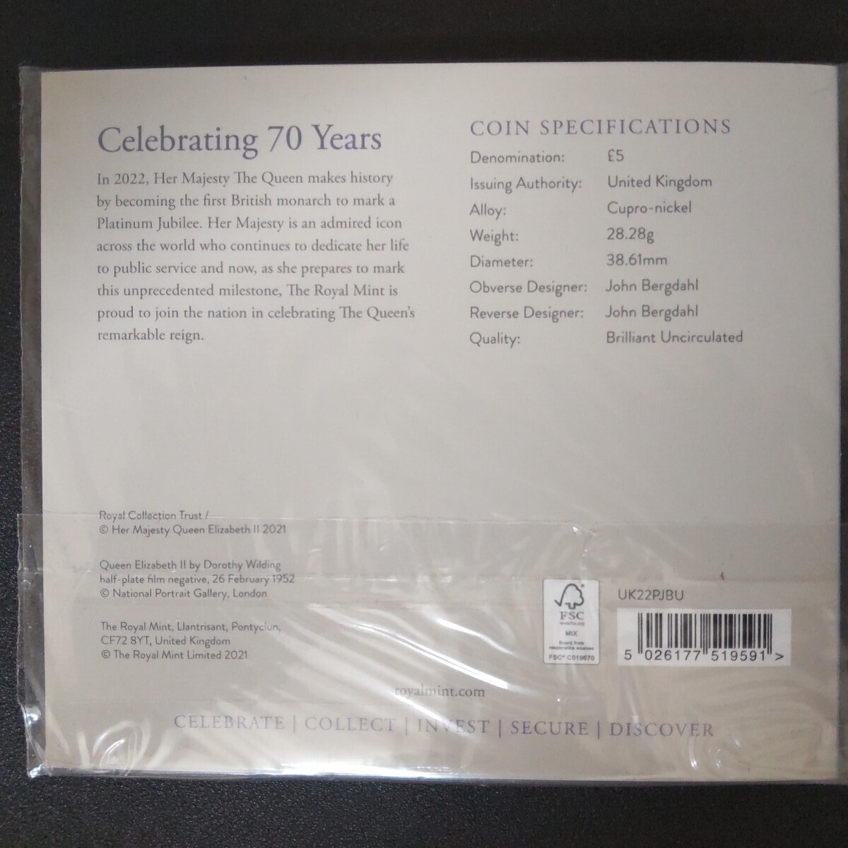 エリザベスⅡ女王の在位70周年を記念して2022年に発行された白銅貨です。
