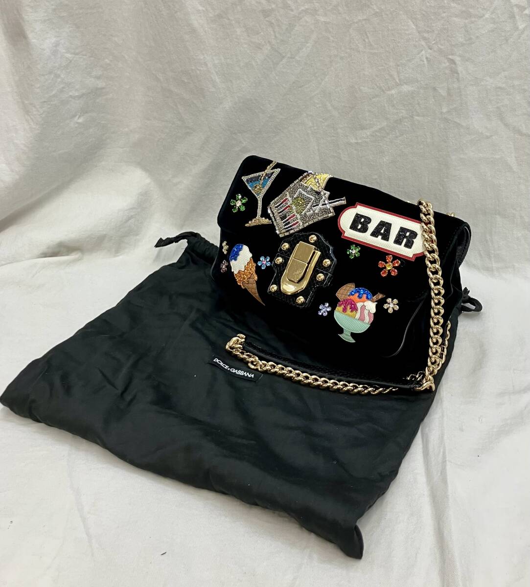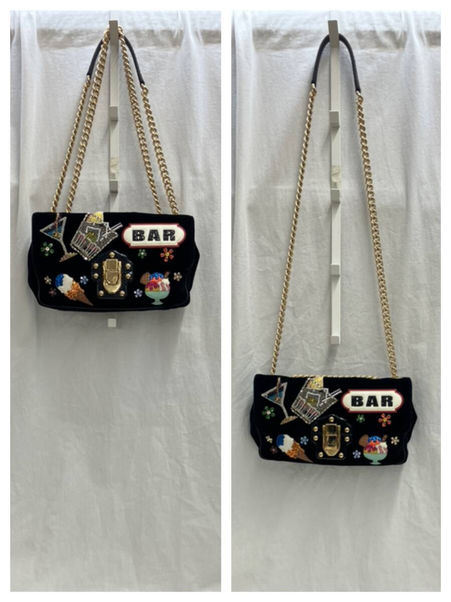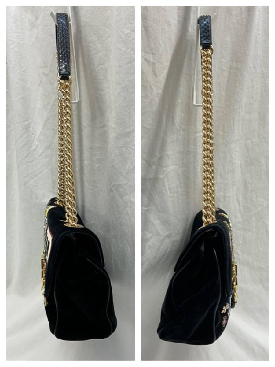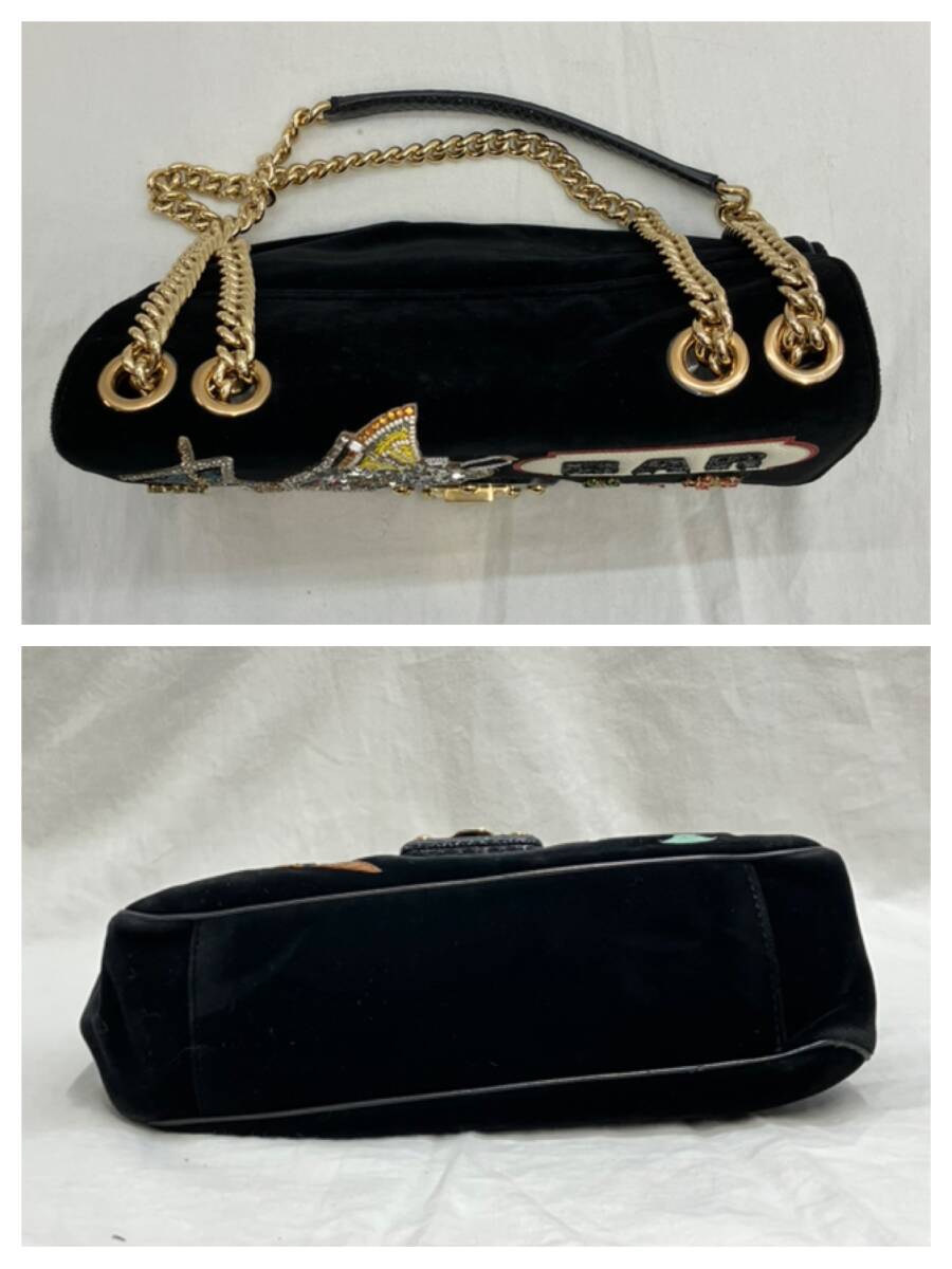 ブランド:DOLCE&GABBANA 品名: ショルダーバッグ 縦:約 15cm 横:約 26cm マチ:約 7cm ショルダー:約 66cm〜:約 113cm カラー:ブラック 素材:ベロア 付属品: ※保存袋 ※ミラー 状態: ※底角に擦れ傷有り ※スパンコール部分に剥がれ有り(劣化) ※金具に傷有り ※癖(型崩れ)有り |