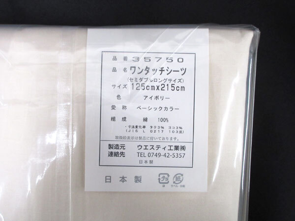 | 内 容 | ■ウエスティ ワンタッチシーツ セミダブルロング アイボリー ■サイズ:125×215cm ■素材:綿100% ■日本製 |