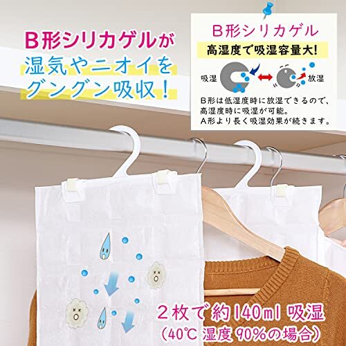 商品名 | アストロ 除湿シート ホワイト 2枚組 クローゼット用 シリカゲル入り 除湿パック 消臭 吸湿 フック付き | ||