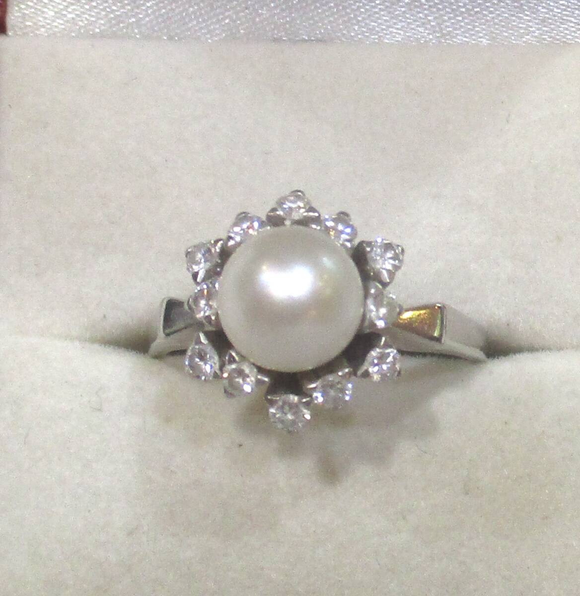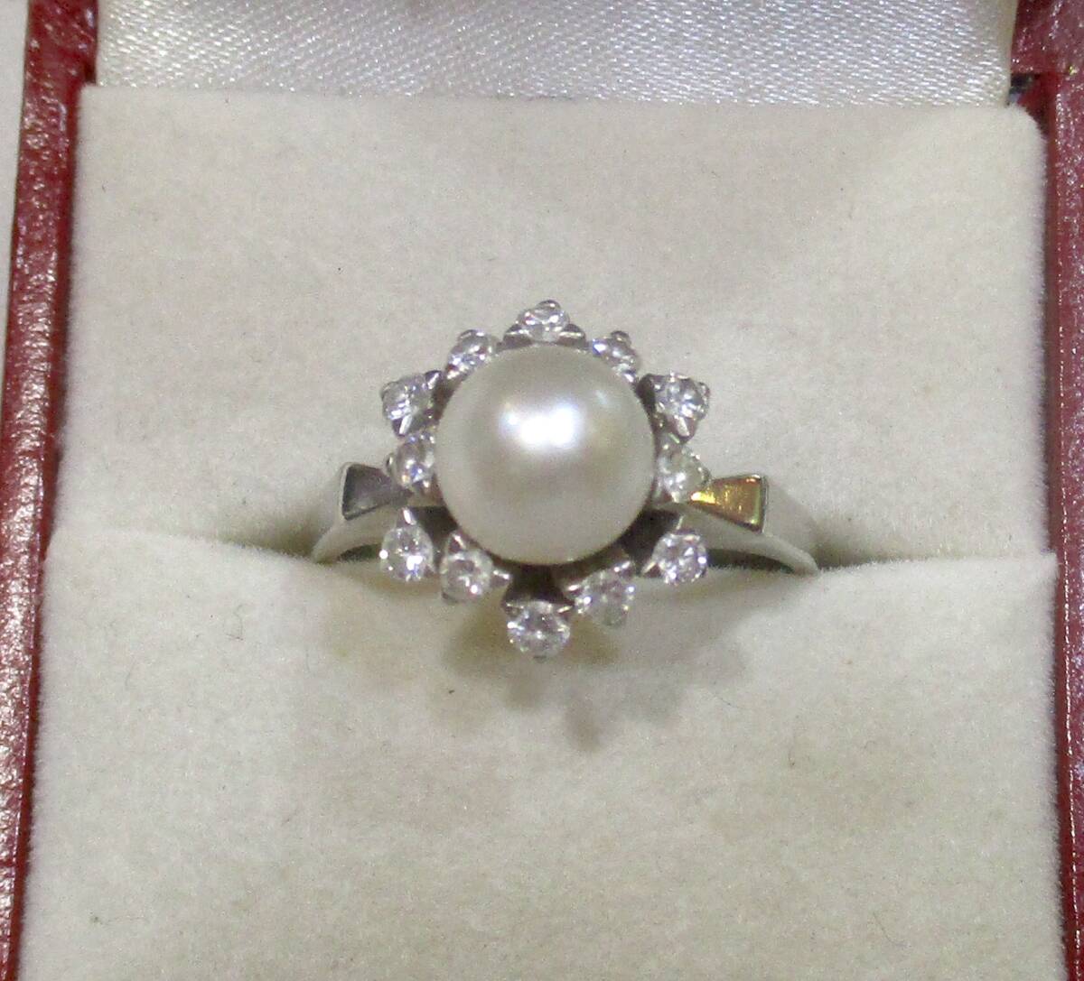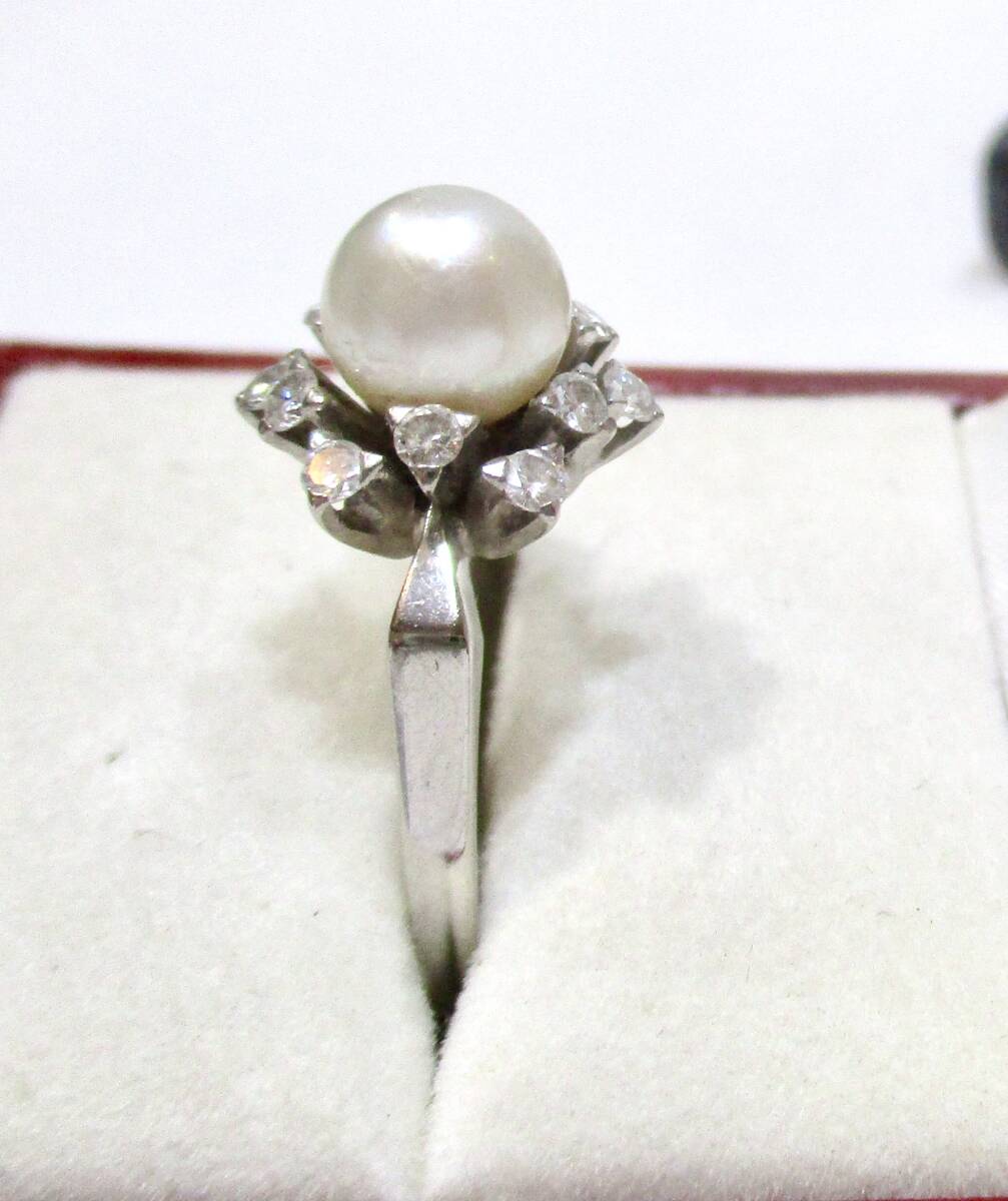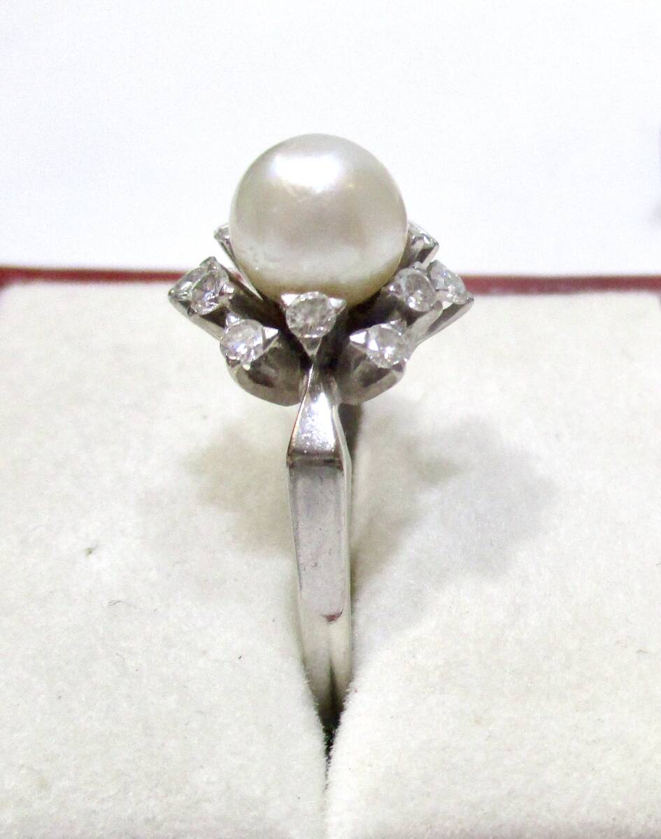 ☆ ビンテージ パール/ ヨーロピアンカットダイア リング 15KWG 外国製