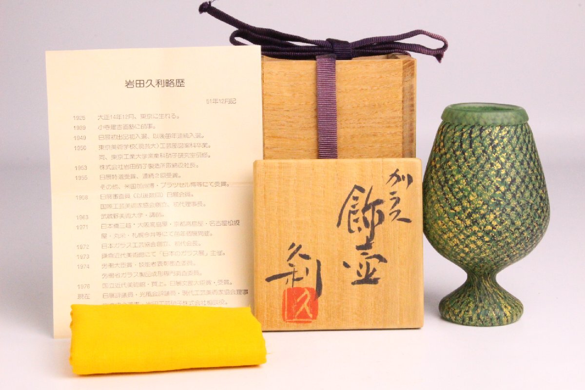 岩田久利 作 ガラス飾壷 「共箱・栞」