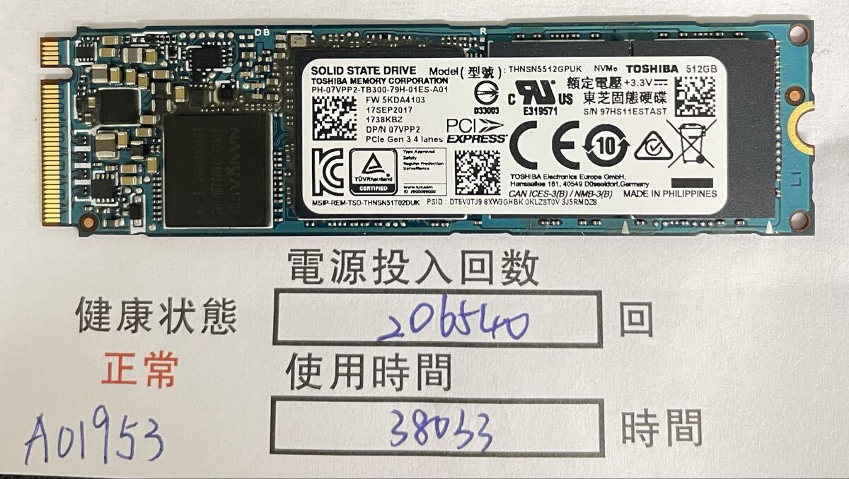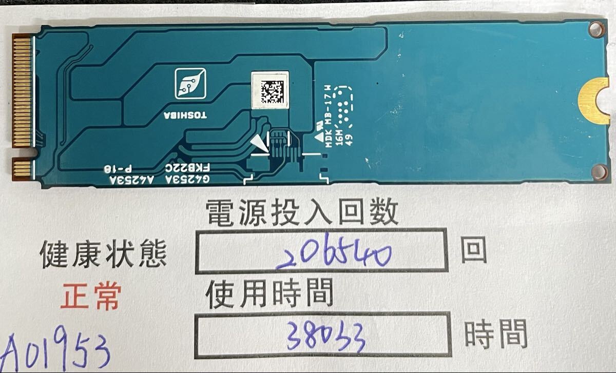 A01953/中古品/NVME 2280 SSD/KIOXIA/512GB/動作確認済み/返品返金対応/納品書発行可(商品説明文ご確認下さい)