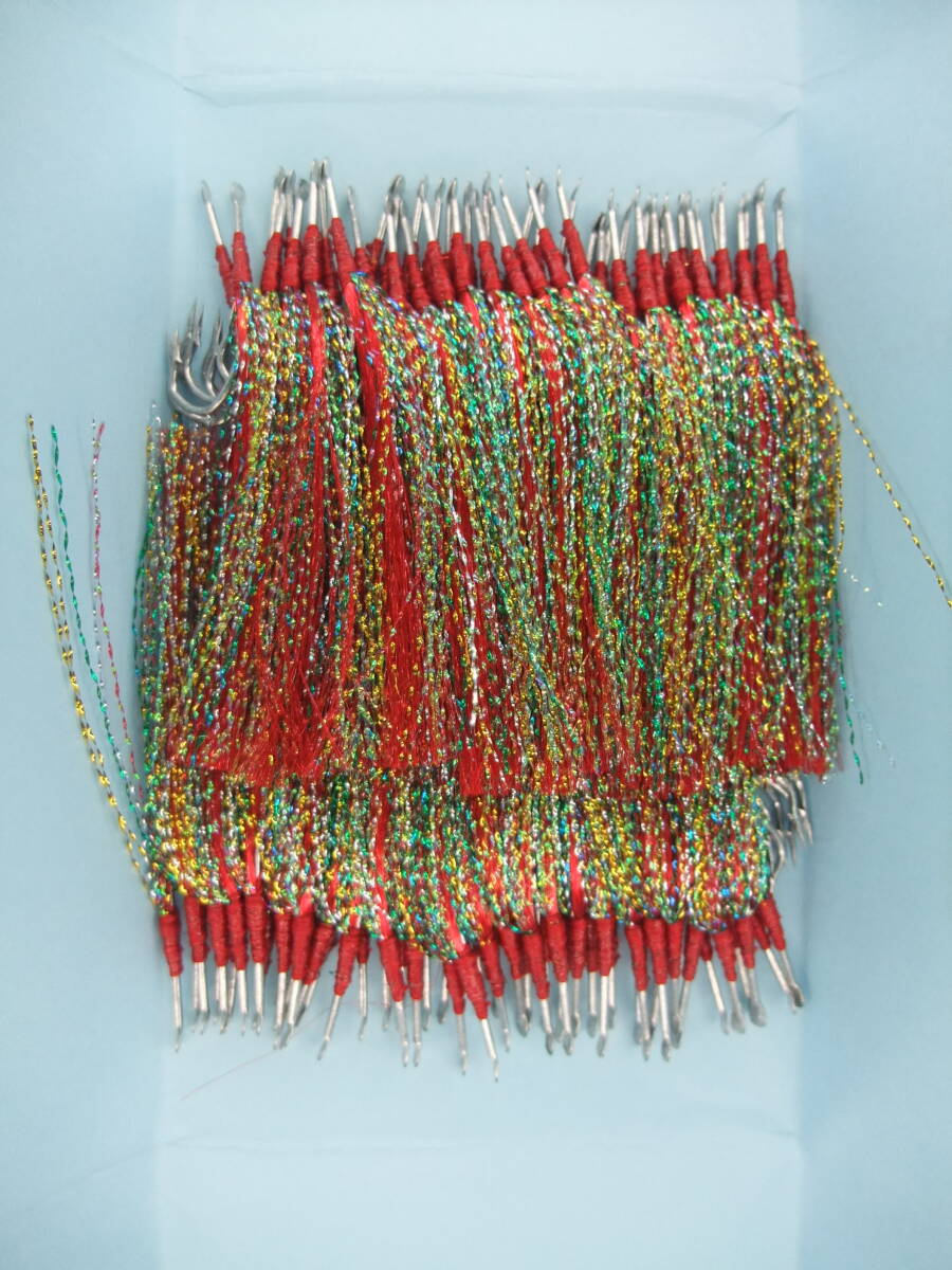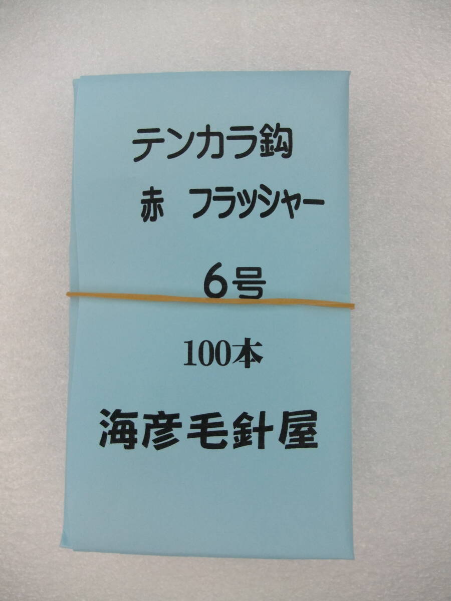 6A100 イソ縄6号毛針 テンカラ鈎  オキメバル 赤フラッシャー 100本入 1セット