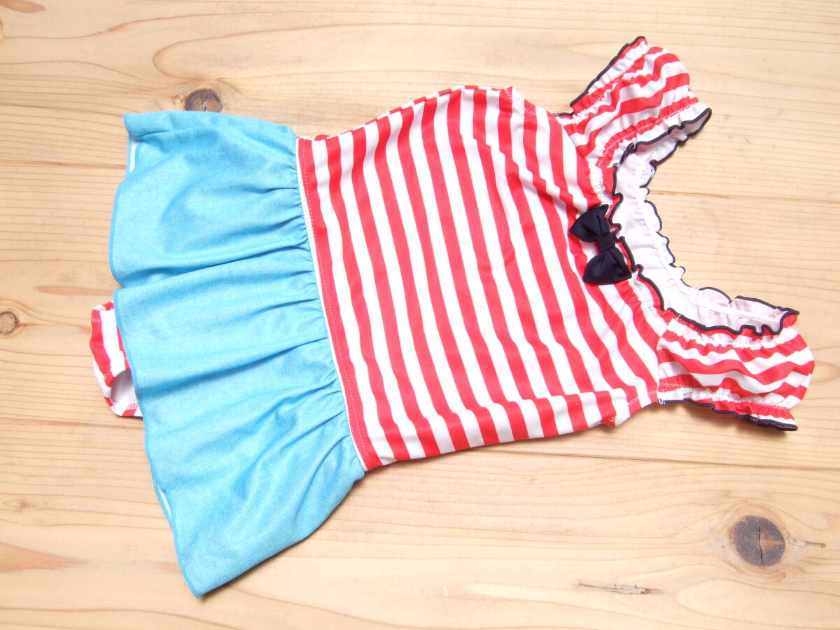 *美品!キッズ女の子イオンリボンボーダーワンピース水着120センチ*