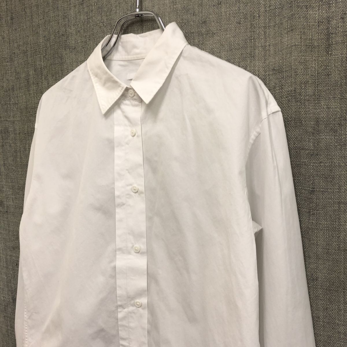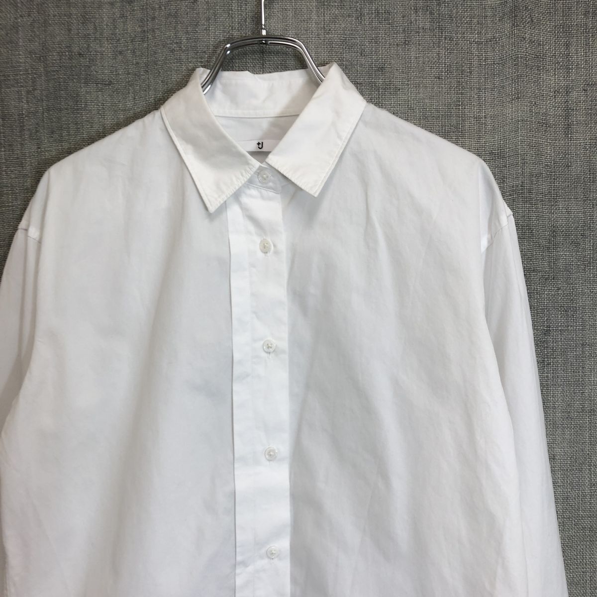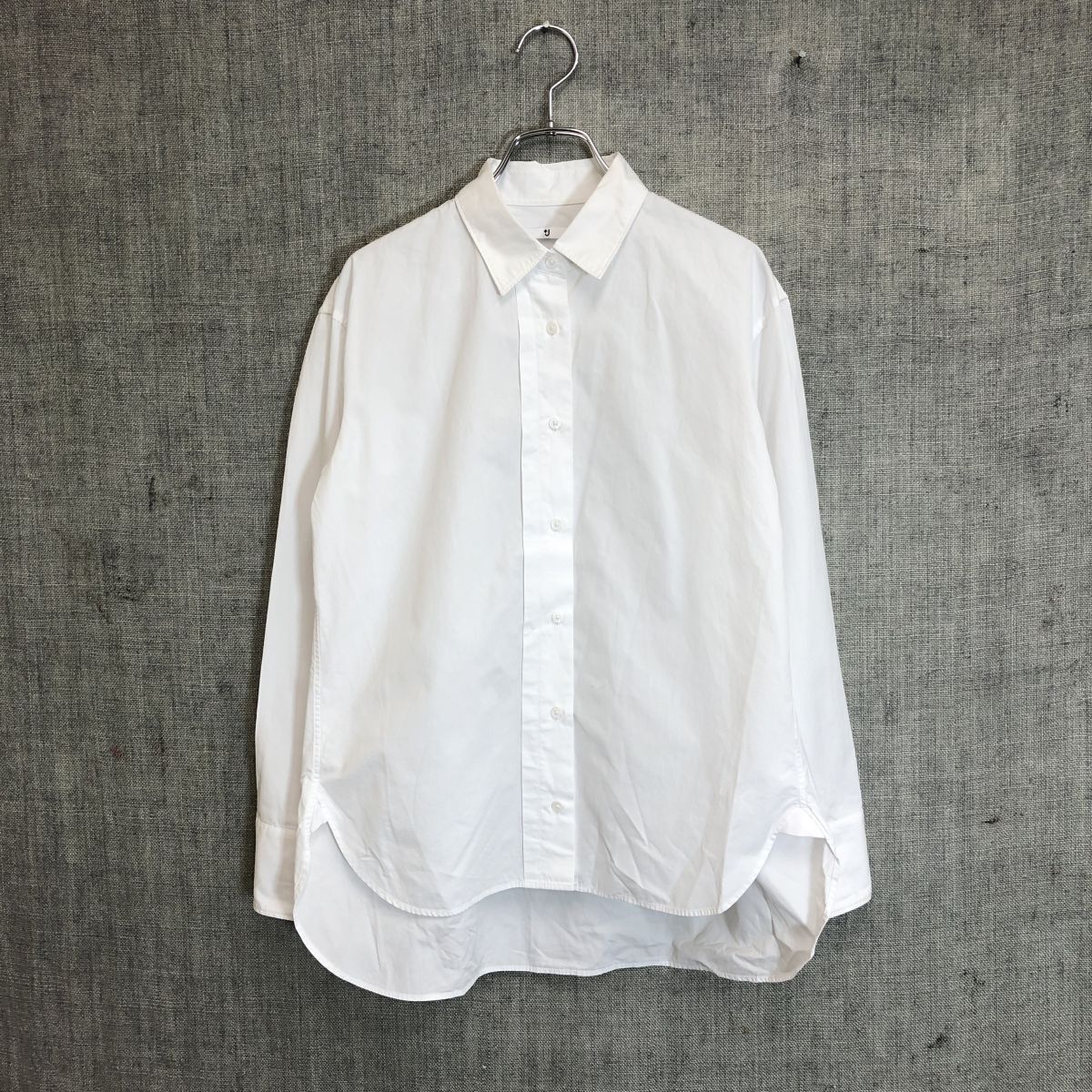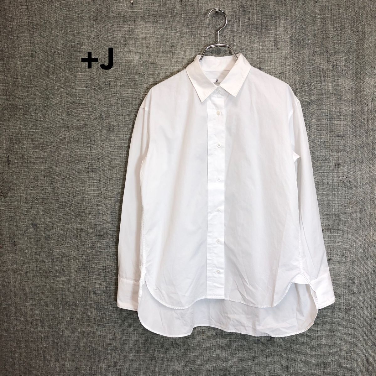2H2487-Y◆+J UNIQLO プラスジェイ ユニクロ 長袖シャツ サイドタック 無地 ラウンドヘム レディース カジュアル ◆sizeS ホワイト 綿