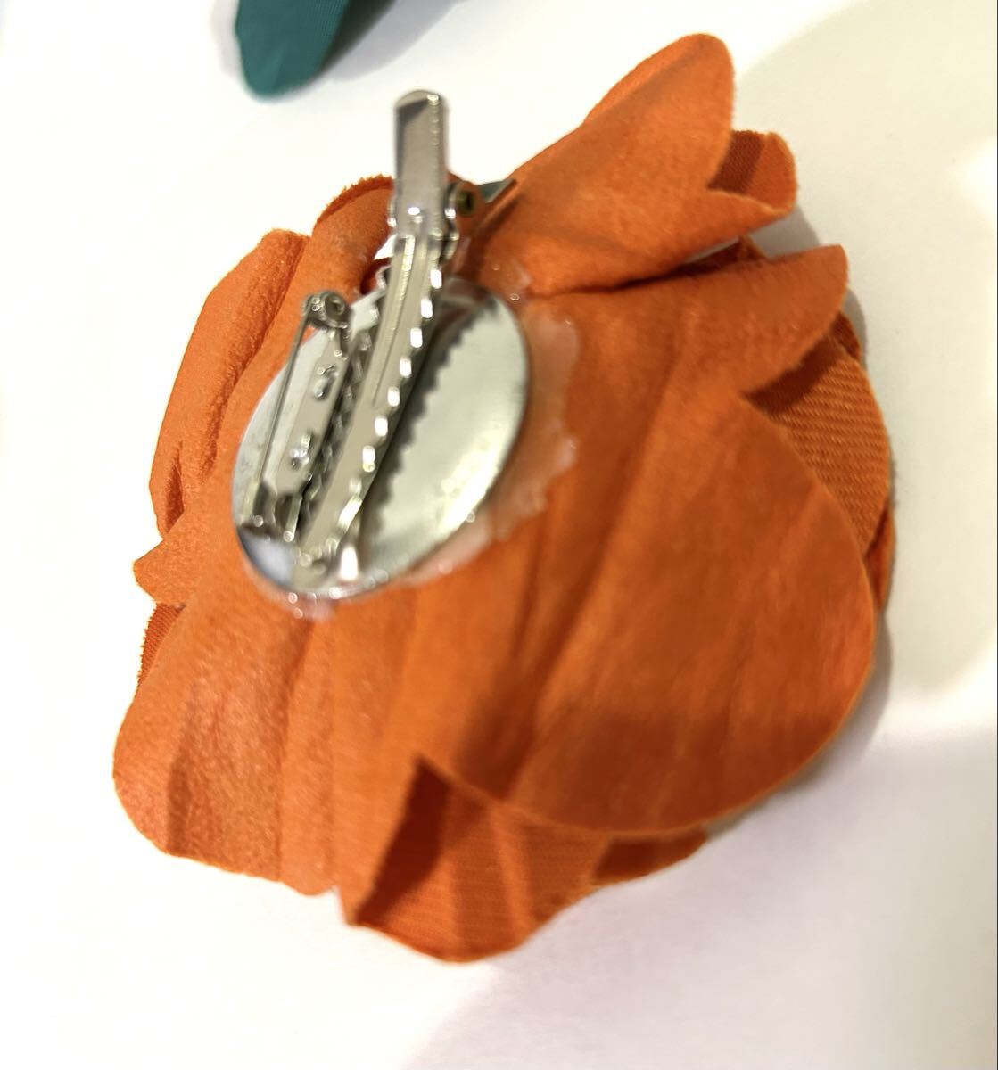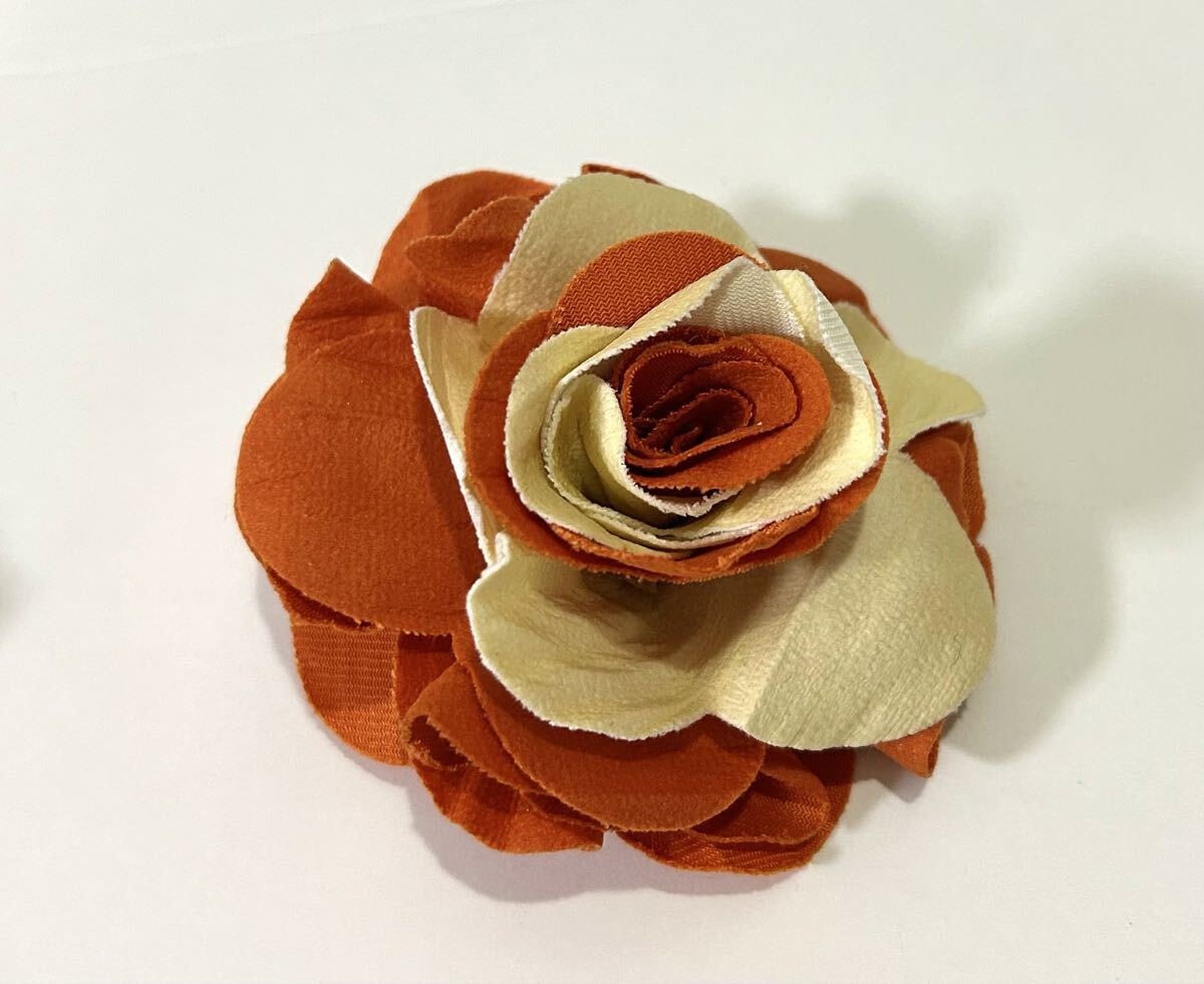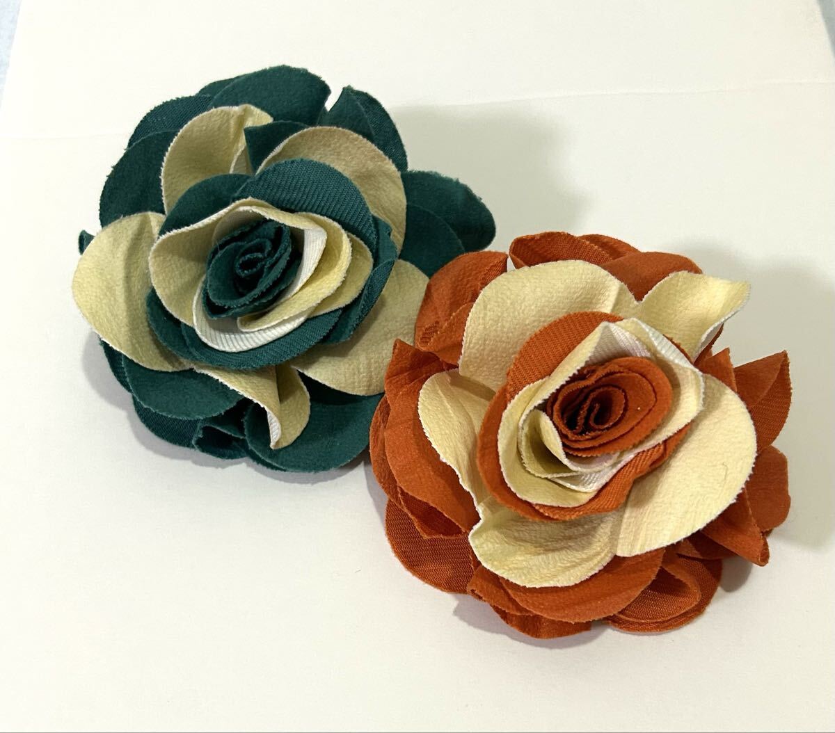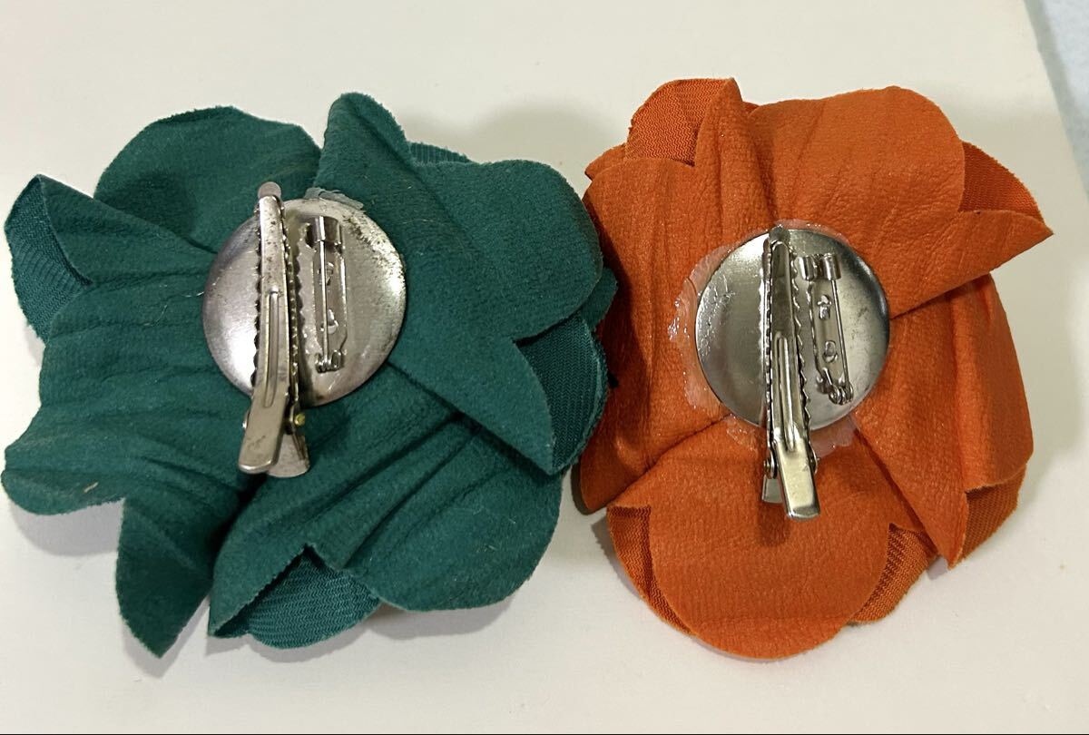 商品名 : フラワーコサージュ クリップ グリーン オレンジ セット