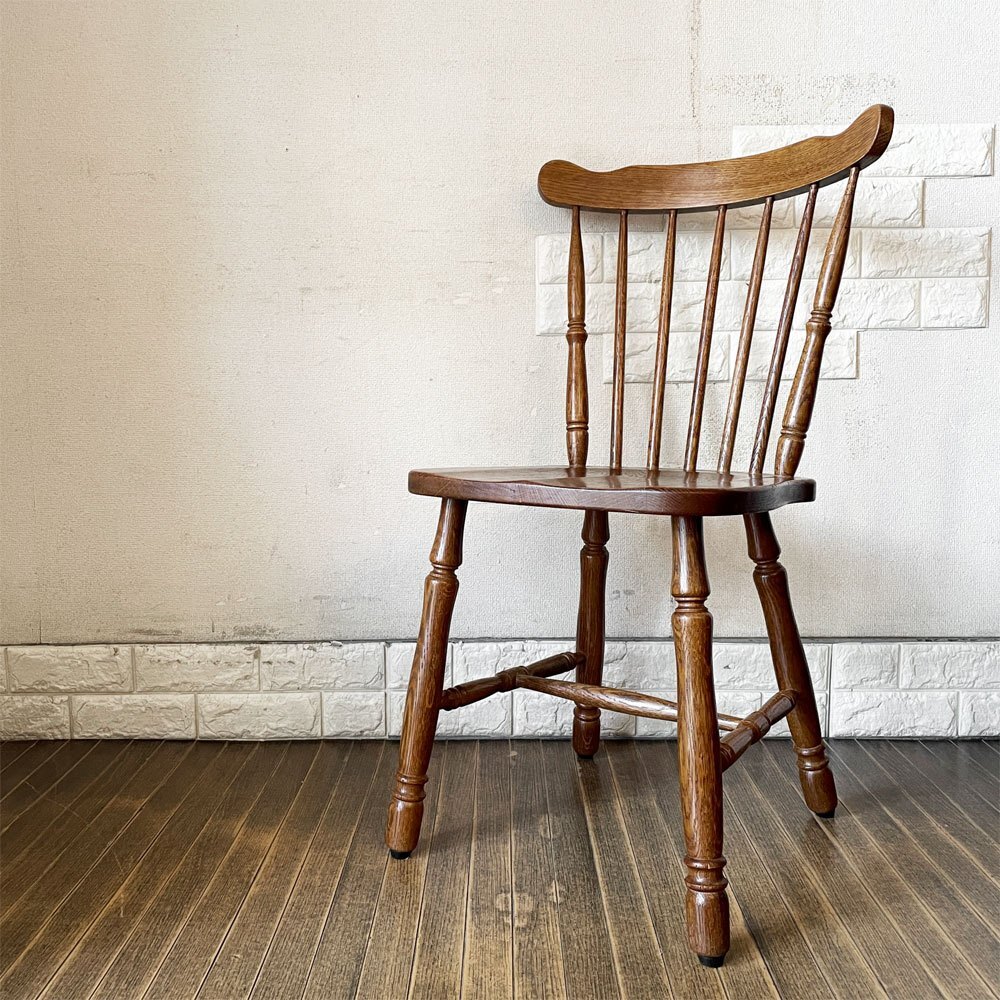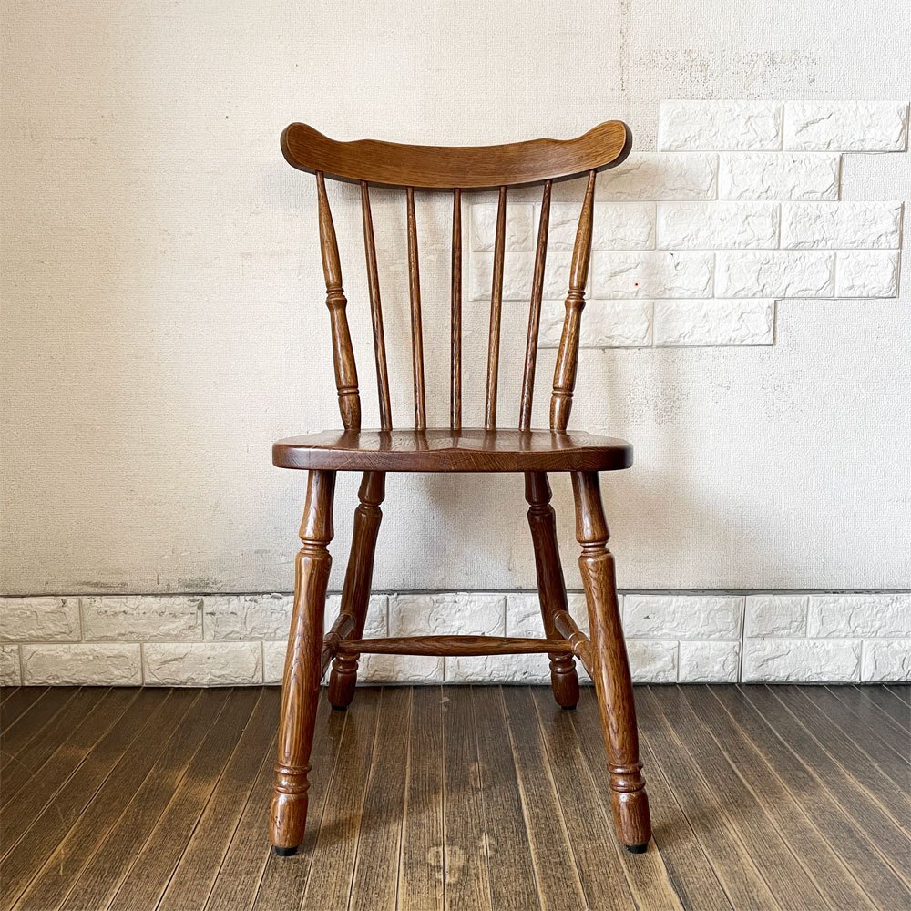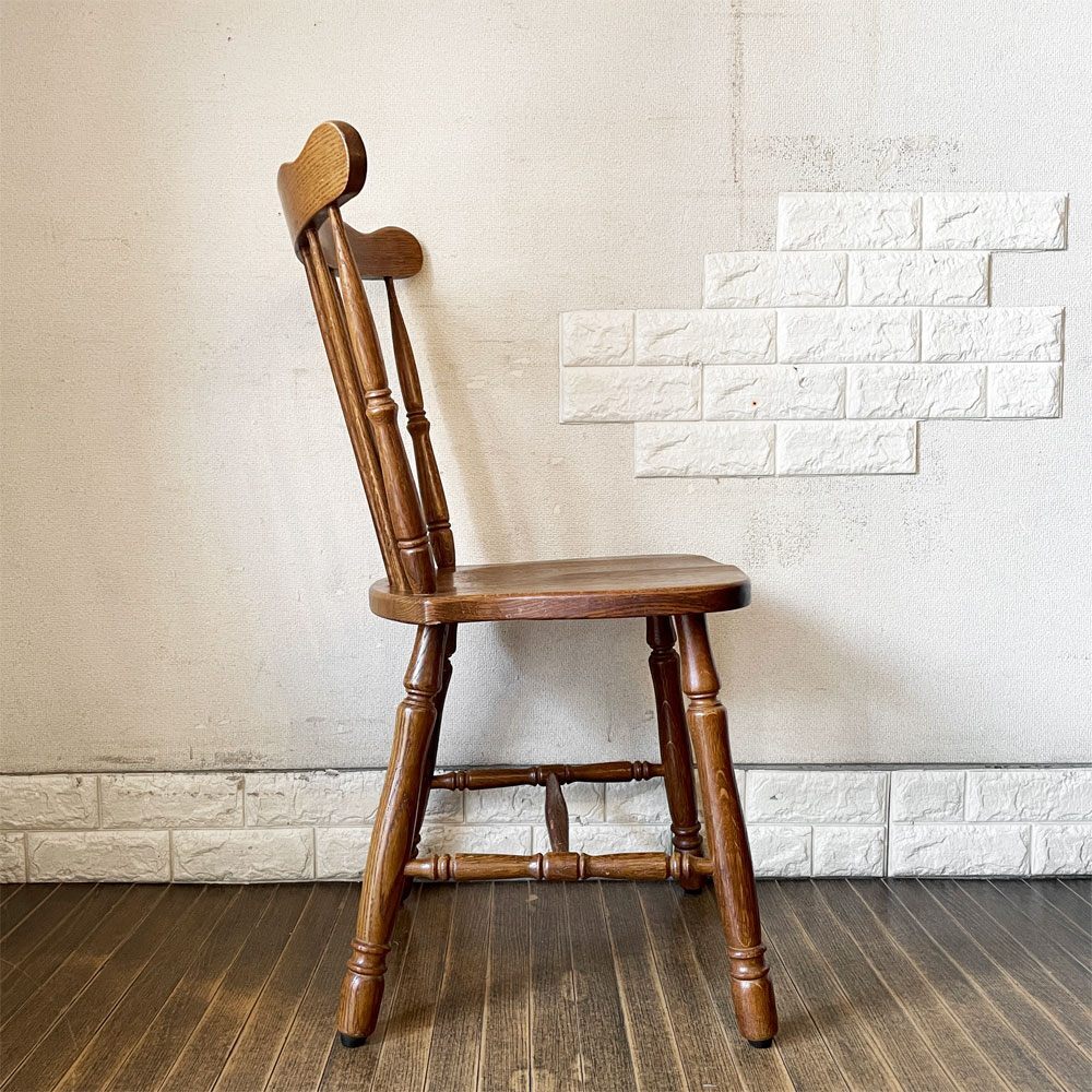 | コメント | どこかカントリー感の漂うクラシカルなデザインが魅力のウィンザーチェアです。 前保有者様がビンテージ家具を中心に取り扱うインテリアセレクトショップ、SHARK ATTACK(シャークアタック)にて購入されたという1脚。 座面裏には「AFA BELGIUM」の刻印が確認できるためおそらくベルギー製かと思われますが、メーカーの詳細は残念ながら不明です。 伝統的な英国スタイルを引き継ぐ佇まいにオーク材の力強い木目が相まって、アンティークさながらの雰囲気をお楽しみいただけます。 また5本のスポークをあしらった背もたれが程よい抜け感を生みつつ、挽き脚などのさりげない装飾、座繰りを施した座面など随所にこだわりも感じられます。 落ち着きと上品さを兼ね備え、ダイニングシーンにぴったりのビンテージチェアです。 ※当ショップは、主にリサイクル品を取り扱っております。基本的にUSED品である事をご理解頂き、ご入札をご検討下さいませ。 |