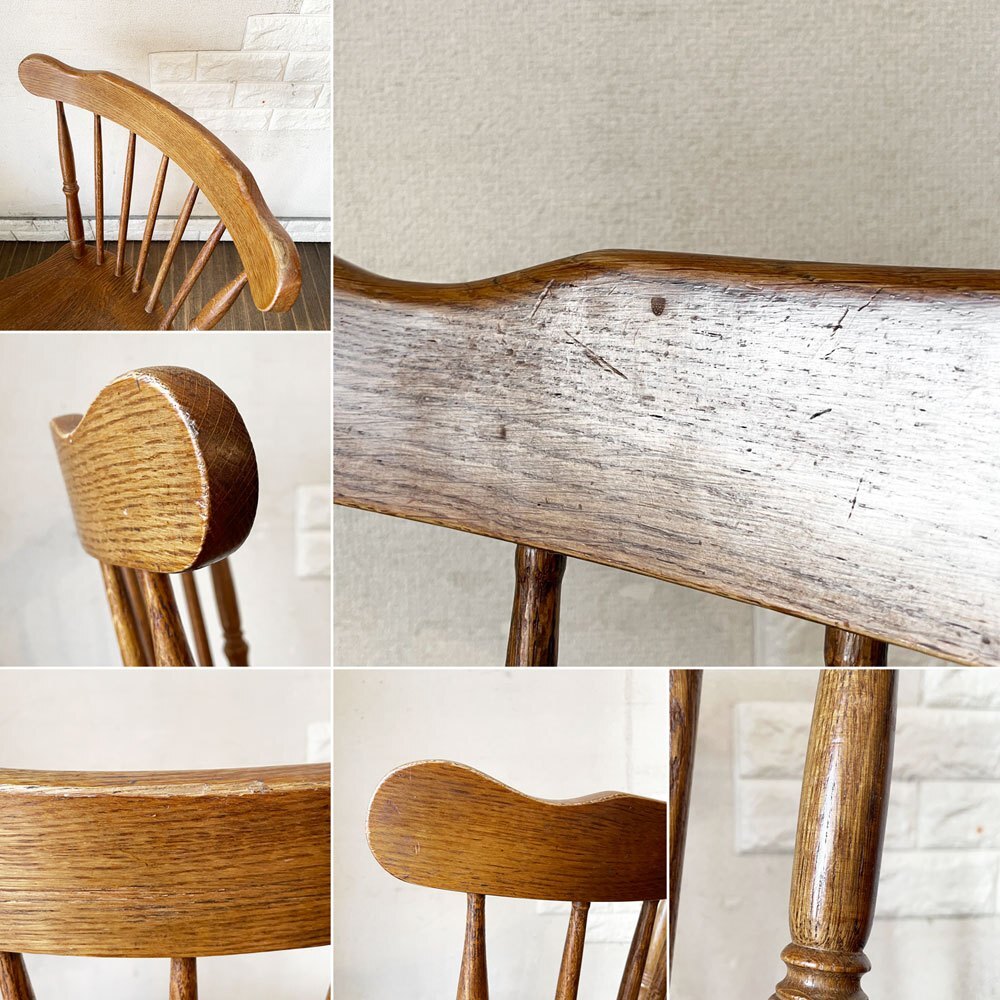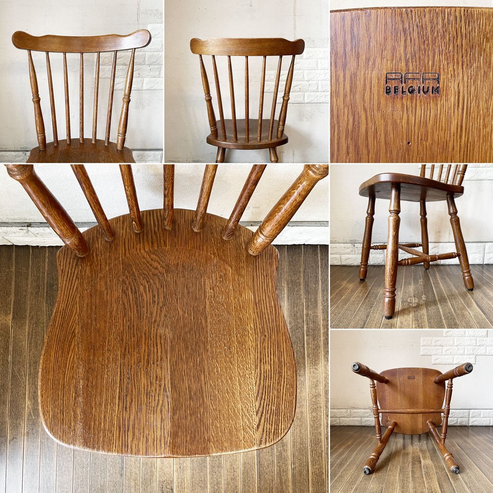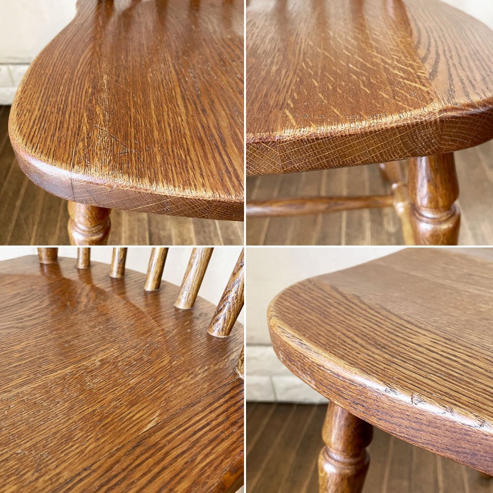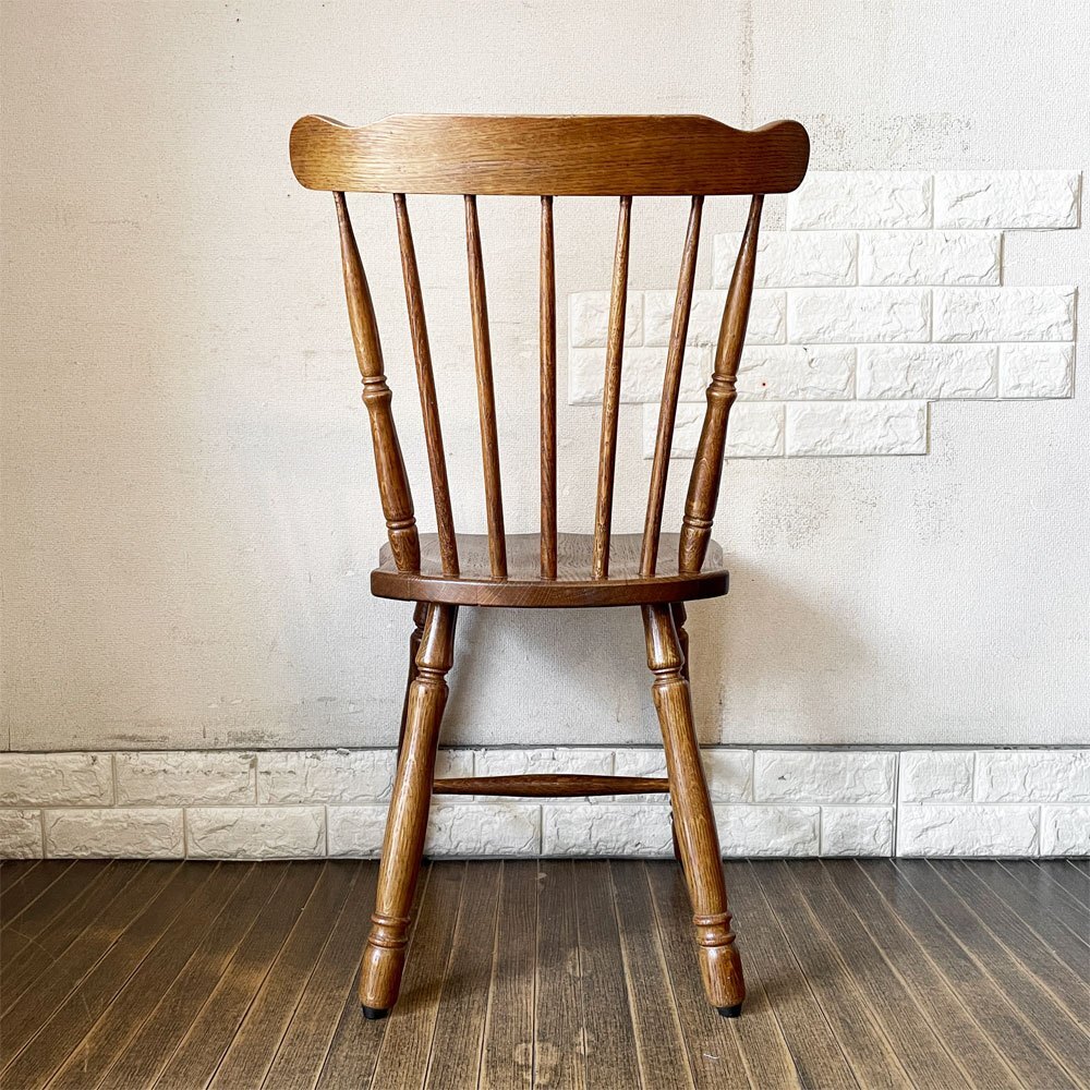 | コメント | どこかカントリー感の漂うクラシカルなデザインが魅力のウィンザーチェアです。 前保有者様がビンテージ家具を中心に取り扱うインテリアセレクトショップ、SHARK ATTACK(シャークアタック)にて購入されたという1脚。 座面裏には「AFA BELGIUM」の刻印が確認できるためおそらくベルギー製かと思われますが、メーカーの詳細は残念ながら不明です。 伝統的な英国スタイルを引き継ぐ佇まいにオーク材の力強い木目が相まって、アンティークさながらの雰囲気をお楽しみいただけます。 また5本のスポークをあしらった背もたれが程よい抜け感を生みつつ、挽き脚などのさりげない装飾、座繰りを施した座面など随所にこだわりも感じられます。 落ち着きと上品さを兼ね備え、ダイニングシーンにぴったりのビンテージチェアです。 ※当ショップは、主にリサイクル品を取り扱っております。基本的にUSED品である事をご理解頂き、ご入札をご検討下さいませ。 |