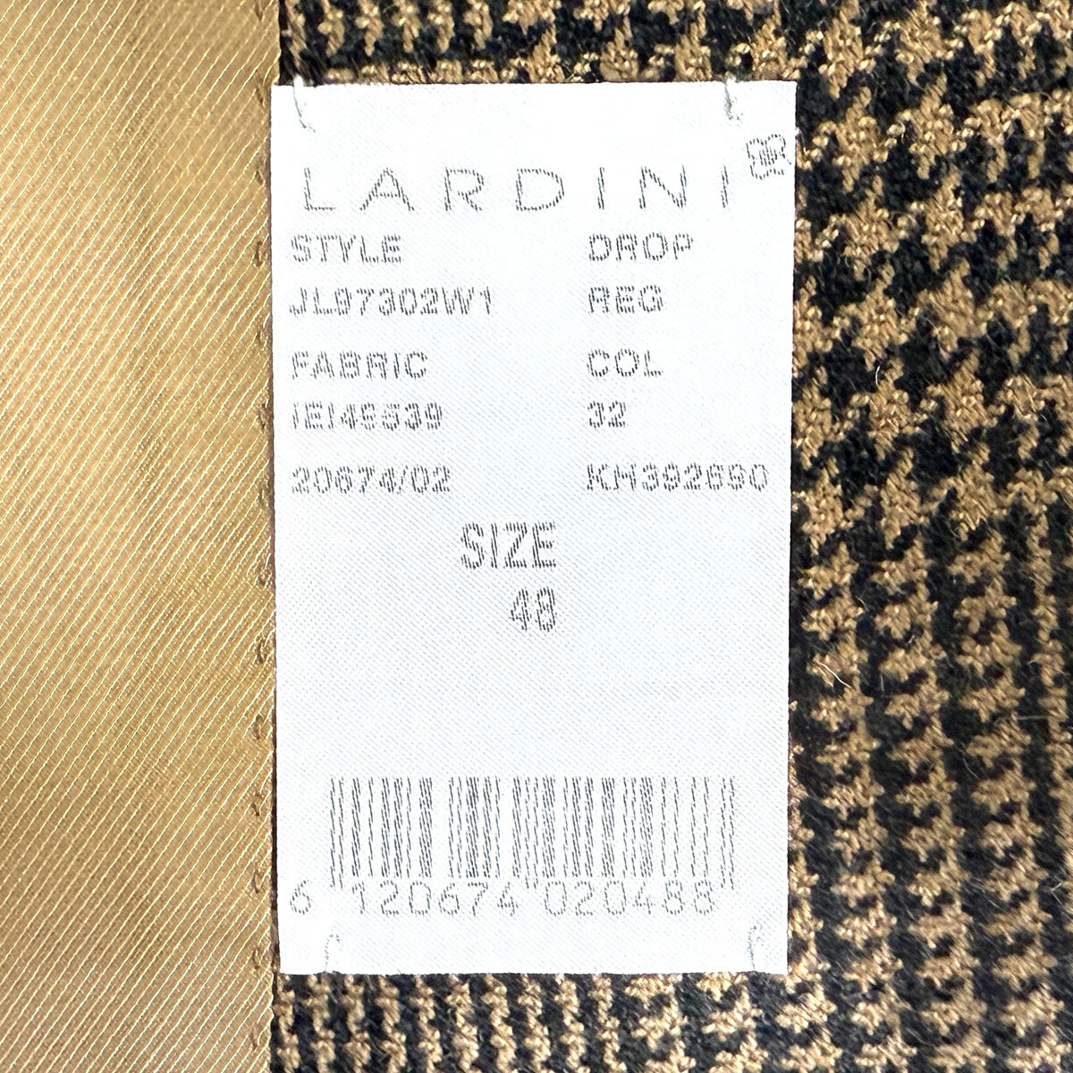 商品について:定価275,000円程度。イタリアを代表するテーラードブランド LARDINI(ラルディーニ) の中でも、最高峰に位置する SARTORIA(サルトリア)ライン より仕立てられたグレンプレイド柄ジャケットです。 柔らかなキャメルを基調にしたブラウンベースのチェック柄は、落ち着きと華やかさを兼ね備えたクラシカルな佇まい。立体的な仕立てとラルディーニ特有の軽やかさを融合させ、上質な着心地を実現しています。 ビジネスからエレガントなカジュアルスタイルまで幅広く対応できる、ワードローブに欠かせない一着です。