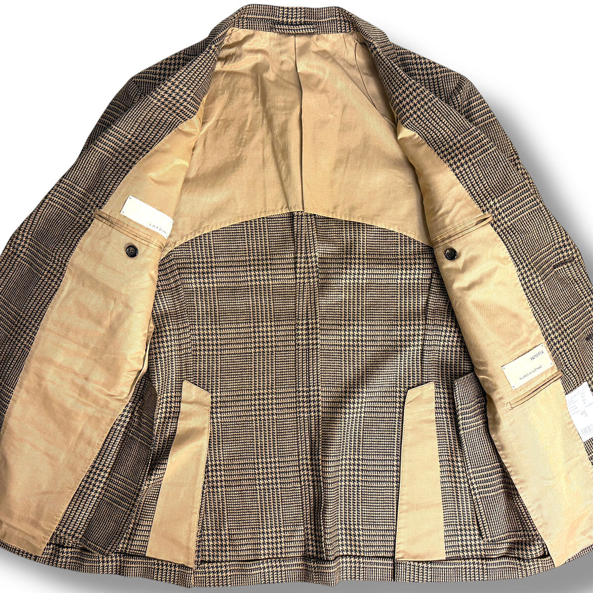 J6310 美品 ラルディーニ サルトリアライン キャメル グレンプレイド柄 テーラードジャケット ブラウン 48 LARDINI