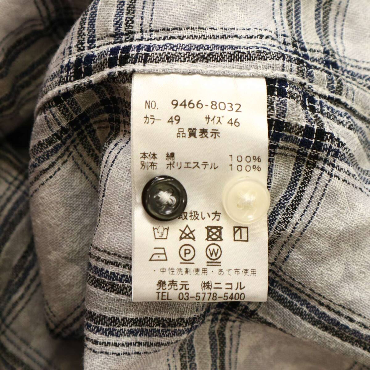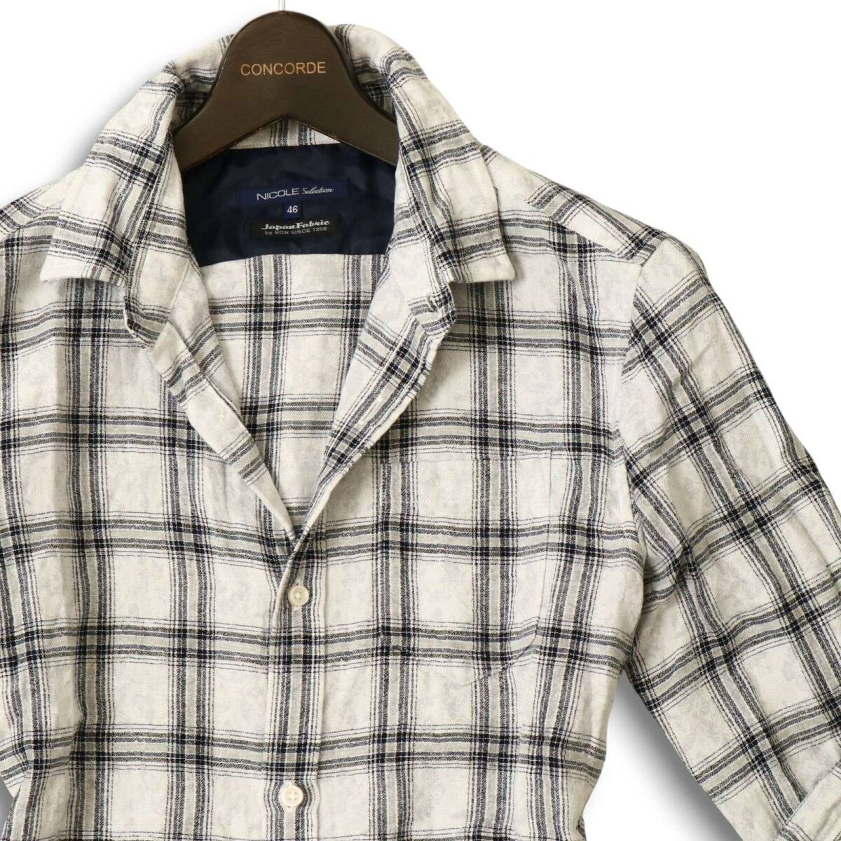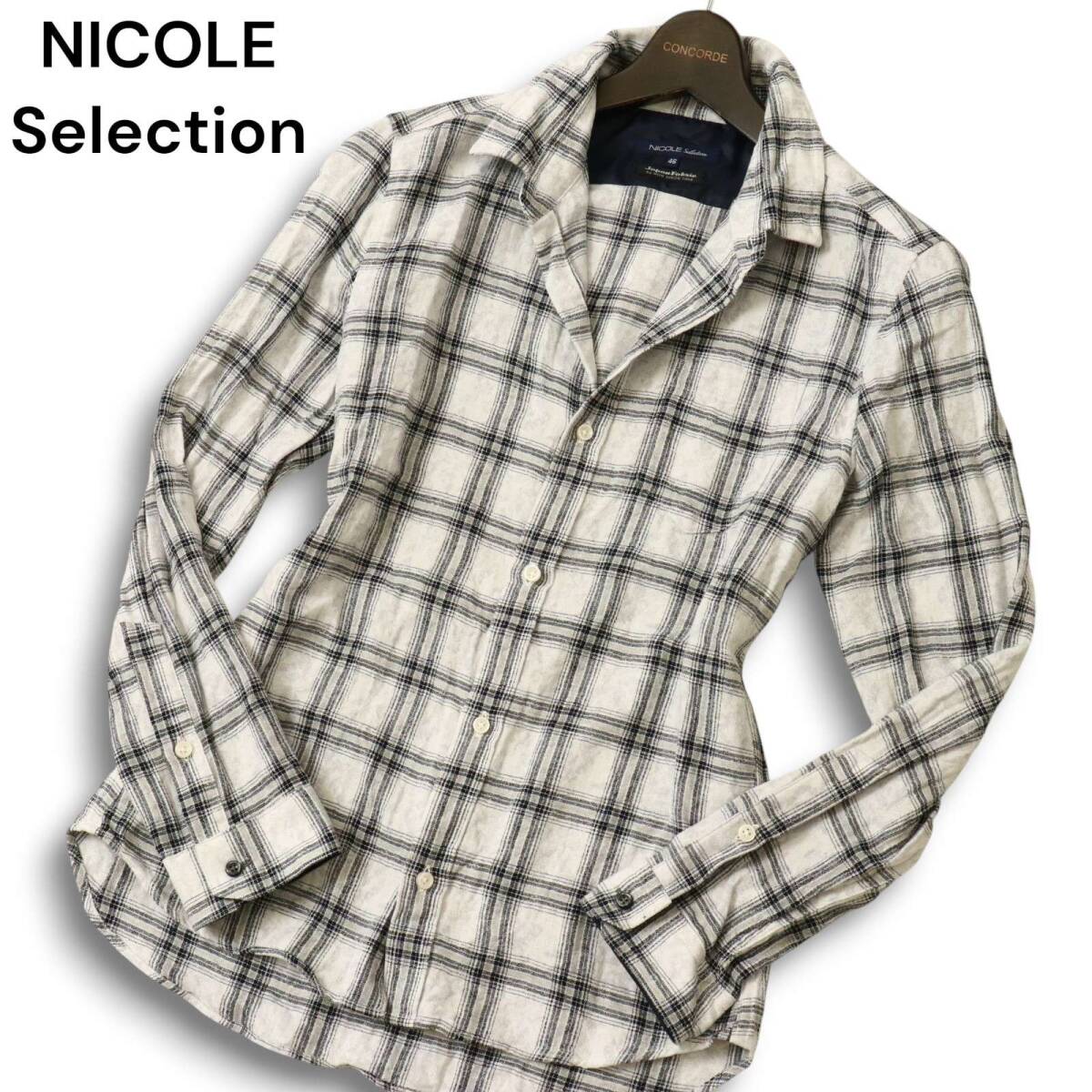 NICOLE Selection ニコル セレクション 通年 日本製生地 襟ワイヤー★ 長袖 チェック シャツ Sz.46 メンズ 灰 グレー