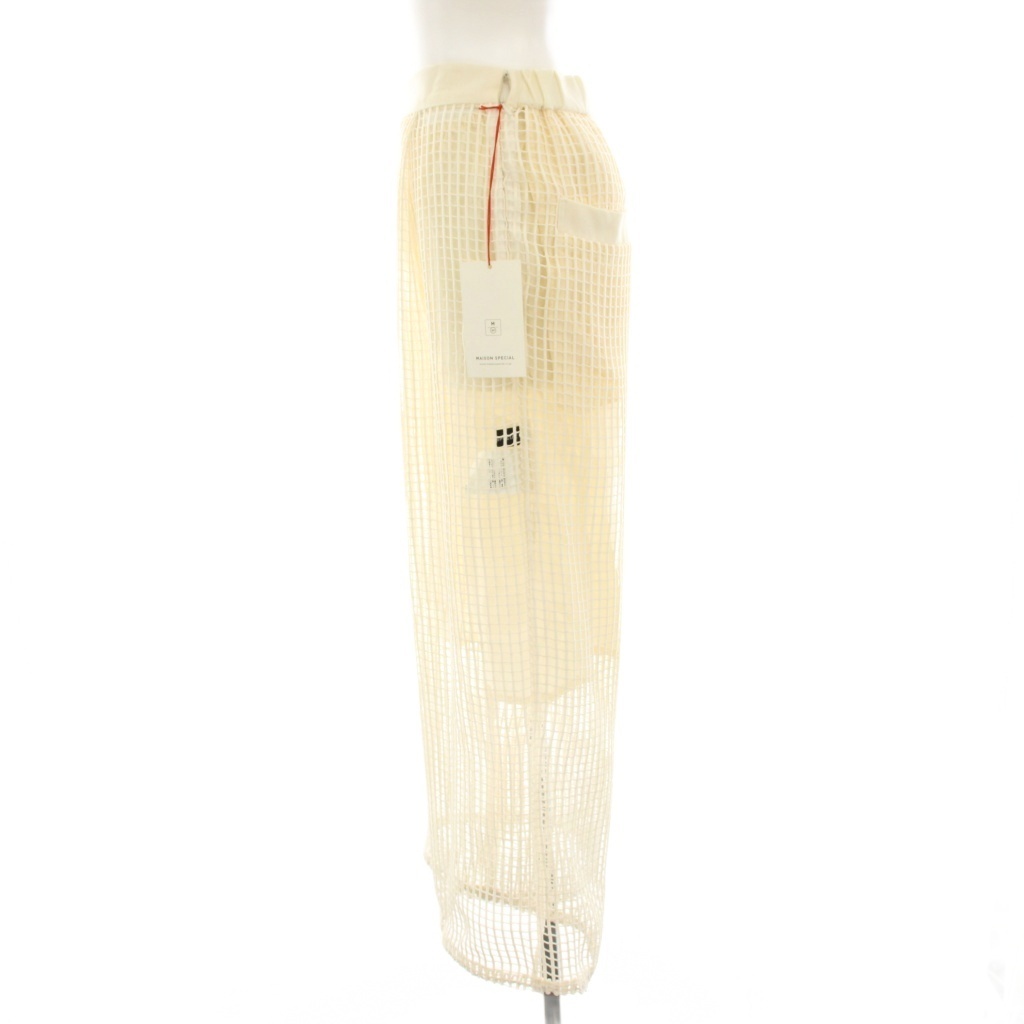 未使用品 メゾンスペシャル MAISON SPECIAL スクエアメッシュレースワイドパンツ シアー イージー 38 アイボリー 21221465403