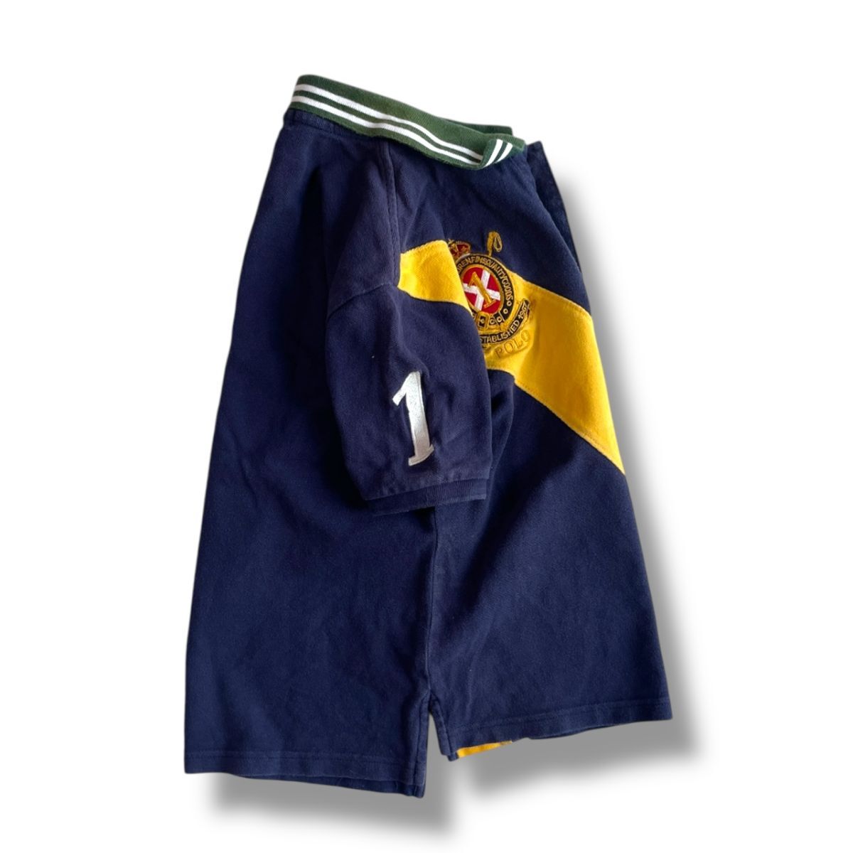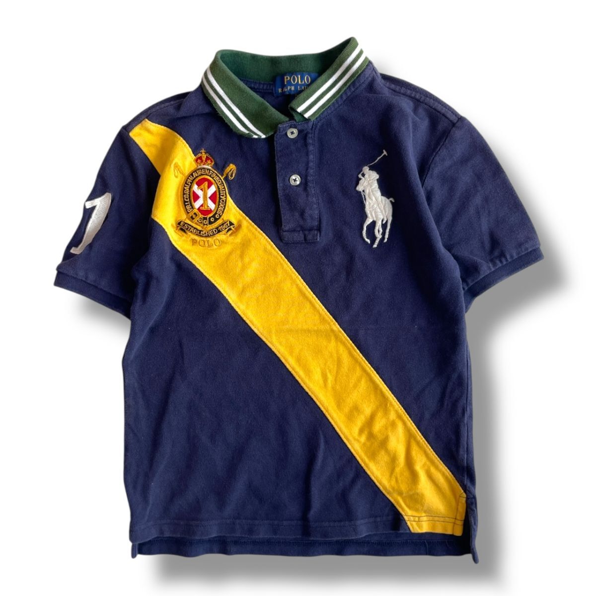 国内正規★ POLO RALPH LAUREN ポロ ラルフローレン キッズ 半袖 刺繍ロゴ 切り返し エンブレム ポロシャツ ネイビー 130~140cm トップス