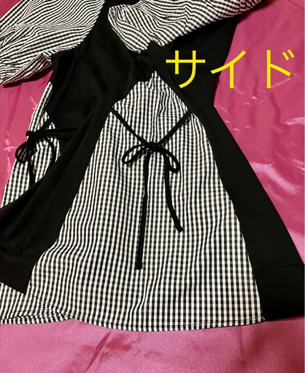 【新品タグ付き】ワキリボン ギンガムチェックキリカエ トップス レディース大きいサイズ 4L