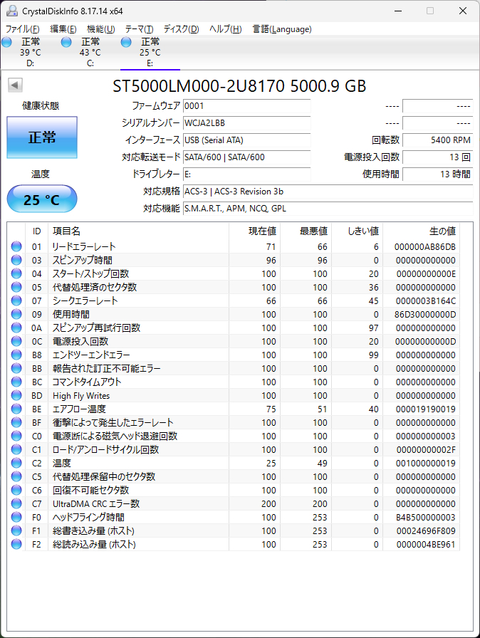 ★商品詳細 ・メーカーアウトレット品で購入後は未使用です。 ・BUFFALO バッファロー ポータブル HDD 5TB ホワイト ・型番:HD-PGF5.0U3-GWHA ・CrystalDiskInfoの情報は画像3を参照してください。ただし確認等で若干増加するかもしれません。 ・本体、USBケーブルのみ発送です。 ・取扱説明書は欠品ですので必要な場合は下記メーカーHPよりダウンロード&閲覧下さい。 ・元箱は無しです。 ・メーカー保証はございません。 ・メーカーアウトレット品の為、使用歴、小さなキズやスレや汚れ等が性質上あるとお考え下さい。 ・詳しい商品特徴&仕様&対応情報は下記のメーカーHPをご参照下さい。 ・取扱説明書は同梱されていませんので必要な方は下記のメーカーHPからダウンロードもしくは閲覧してご利用下さい。 ・https://www.buffalo.jp/product/detail/hd-pgf5.0u3-gwha.html 【商品概要】 ●耐衝撃ボディーで不意のアクシデントから守る 持ち運ぶ機会が多いポータブルHDDにとって落下のリスクは避けられません。本商品は、そんな万が一の落下からドライブを守るため耐衝撃ボディーを採用しています。衝撃吸収フレーム(板バネ)とトータル8個(2個×4角)の衝撃吸収ゴムが内蔵ドライブをしっかりガードします。 ●データのバックアップ・復元が簡単!「スマートツインズ」 Windows PC用システムバックアップアプリ「スマートツインズ」を添付。データ領域もシステム領域も簡単にバックアップ/復元が可能です。 ●しっかりとした接続感で接続トラブルを削減 筐体のUSBコネクタ周りを凹ませ、USBケーブルのモールドの一部分も筐体に差し込む構造とすることで、USBコネクタへのストレスを低減して、USBコネクタ故障のリスクを減らします。 また、コネクターの端子部も挿さりやすい形状にしています(実用新案出願済)。 ●みまもり合図 for ポータブル搭載 故障予測機能「みまもり合図 for ポータブル」がハードディスクの健康状態を把握し、商品の劣化が進むとLEDでお知らせします。 故障予測通知時にはクライアントソフトウェア「みまもり合図」がインストールされたパソコンに接続することで、詳細な状況の確認が行えます。また、データの移行サービス(有償)もご利用いただけます。 ●「おでかけロック」が大切なデータを守る パソコンでHDDをロックすると他のパソコンにつないでもロック状態を維持できる「おでかけロック」機能を搭載しました。万が一の紛失時も安心です。 【仕様】 ●容量:5TB ●対応情報:対応OSなどの対応情報は、メーカーHPにてご確認ください。 ●対応するパソコン:USB3.2(Gen1)/USB3.1(Gen1)/3.0/2.0 Type-A端子を搭載するWindowsパソコンおよびMac ●準拠規格:USBマスストレージクラス ●セキュリティー:おでかけロック、SecureLock Mobile2(暗号化:AES 256bitソフトウェア方式) ●インターフェース:USB3.2(Gen1)/USB3.1(Gen1)/3.0/2.0 ●端子数:1 ●端子形状:USB 3.2(Gen 1)/3.1(Gen 1)/3.0 Micro-B ●電源:USBバスパワー ●寸法:W7.95×H2.15×D11.9cm※本体のみ(突起物除く) ●質量:250g※本体のみ ●発売時期: 2019年11月 ★発送詳細 ・ゆうパケットポスト (日本郵便)で発送します。(元箱は付属しません。) ・【製品箱】&取扱説明書は付属しません。 ★保証 ・商品到着後、初期不良(相性&分解除く)に限り5日以内に取引メッセージよりご連絡頂ければ交換させて頂きます(在庫が無い場合は返金対応となります。) ・交換、返品の際に掛かる送料は落札者様ご負担となりますのでご了承下さい。 |