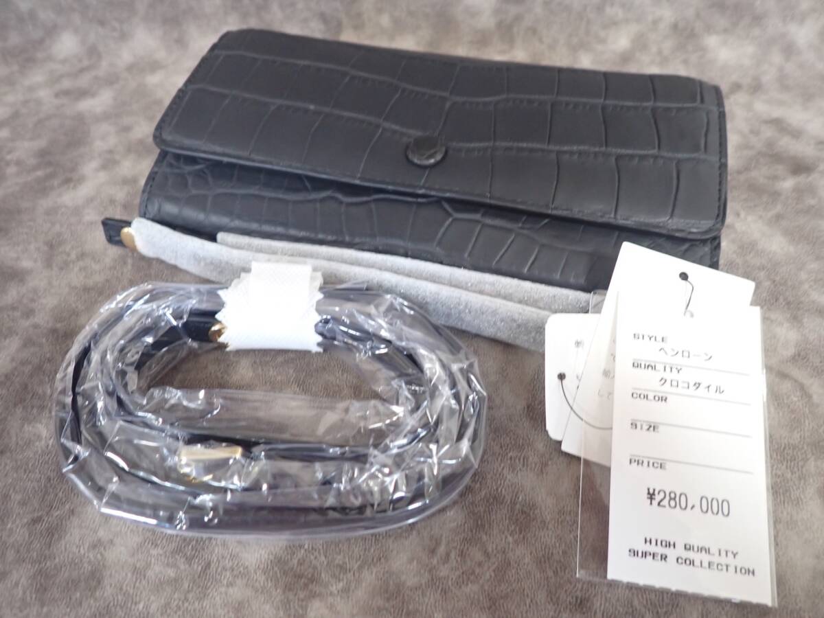 コメント | 本商品は、付属品にハンドバッグ用のベルトとショルダーバッグ用のベルト2本が付属しております。手持ちで財布としても利用できます。ハンドバッグ用のベルトをつけることで、ハンドバッグに早変わりします。ショルダーベルトも付属しておりますので、同様にベルトを取り付けることでショルダーバッグとして利用可能になります。本商品に使用されているクロコダイルレザーは、世界有数のエキゾチックレザー専門タンナーである**「ヘンローン社(Heng Long Leather Co. Ltd.)」製**のものです。ヘンローン社は、高級メゾンにも革を提供しているシンガポールの老舗タンナーとして知られており、厳選された原皮と丁寧ななめし・染色技術によって、極めて美しく高品質なレザーを生み出しています。しなやかさと艶のバランス、そして経年変化の美しさに定評があり、「本物志向の方」や「レザーにこだわる方」からも高い信頼を得ている素材です。 |