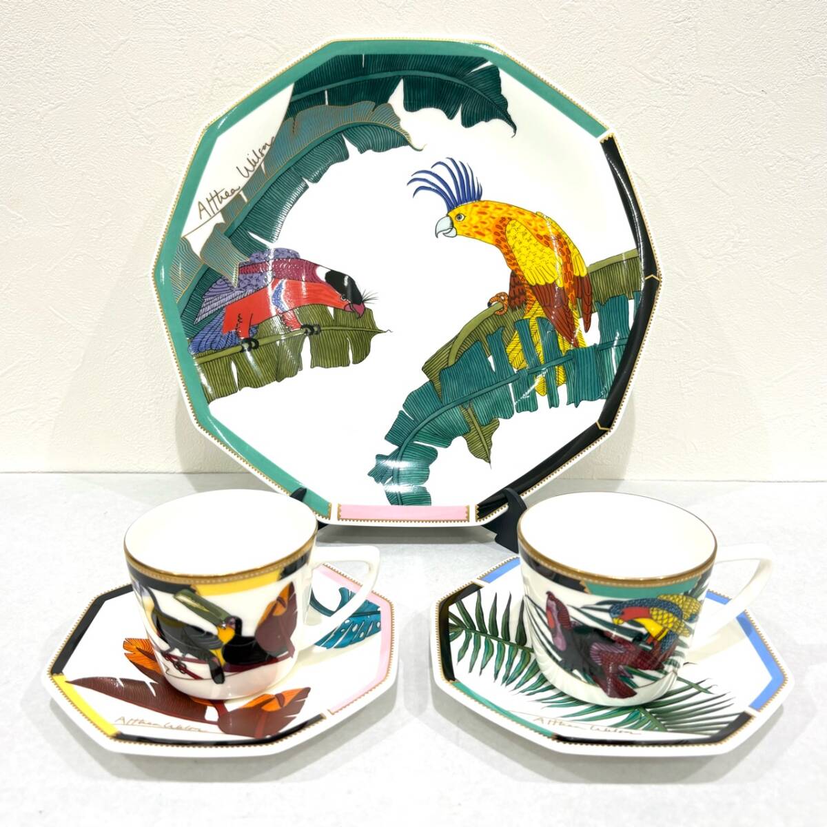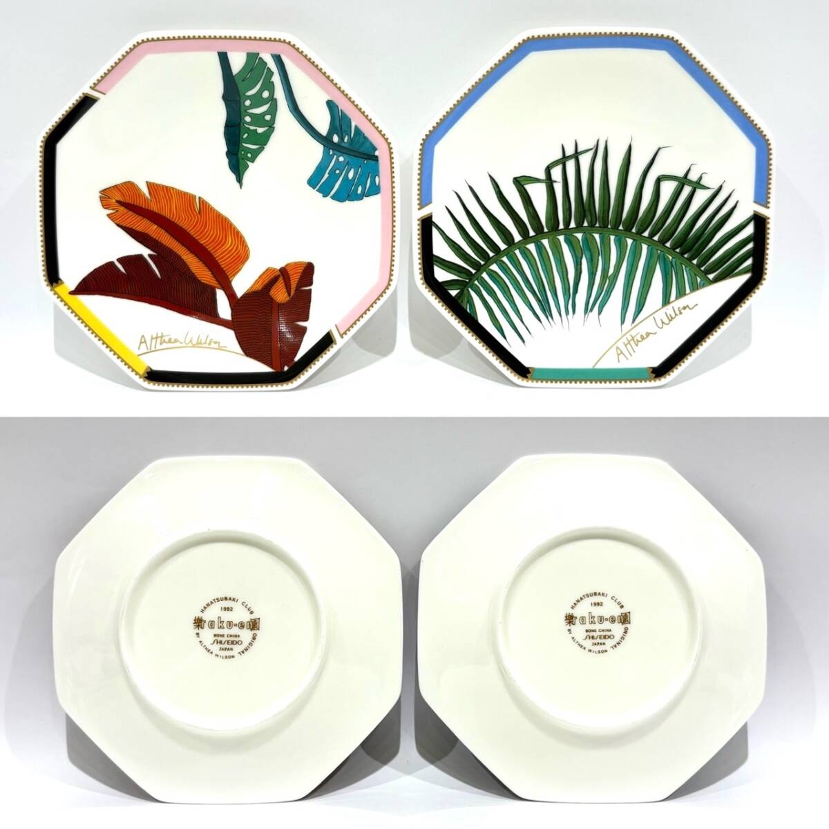 | m810★1円~中古現状【資生堂 SHISEIDO】 楽園 raku-en カップ&ソーサー 2客/大皿セット ◆アルシアウィルソ 食器 コーヒー ティーカップ |