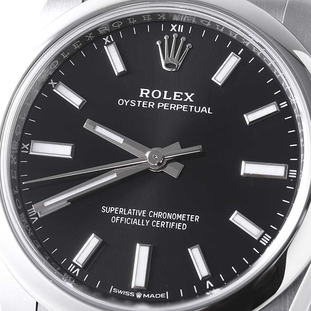 モデル情報 | 2020年発表モデル、ケースサイズ34mmのオイスターパーペチュアルです。デイトジャストよりもリーズナブルで、ダイアルコレクションが豊富に揃いバリエーション豊かなため、年代を問わず幅広い層から人気があります。完全自社製Cal.2232を搭載。パワーリザーブ約55時間。100m防水。 |