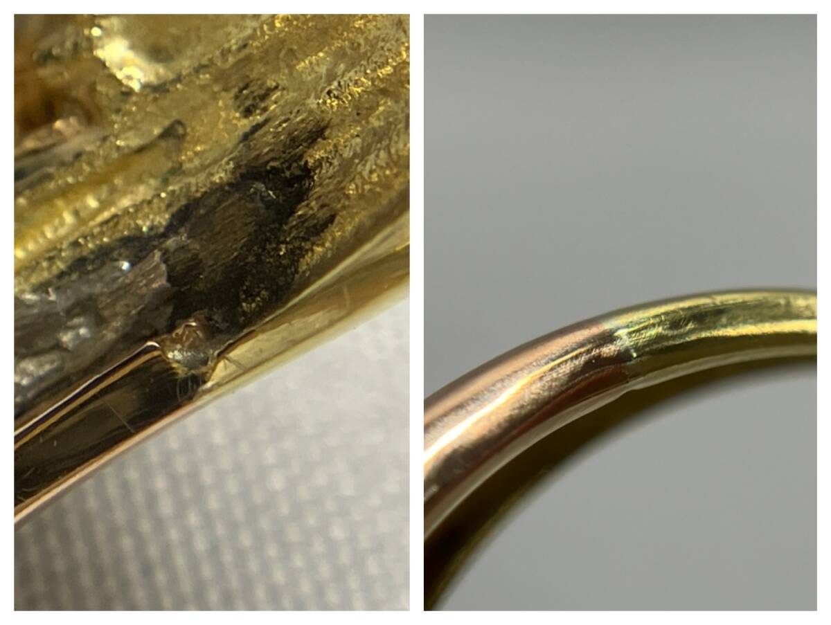全体的に細かな傷があり、内側に汚れがありますので画像でご確認ください。 ※サイズ直しは受け付けておりません。 ※石につきましては鑑別しておりませんのでご了承下さい。 ※カラーストーンに特有のインクルージョンがある場合がございます。 | ||||||