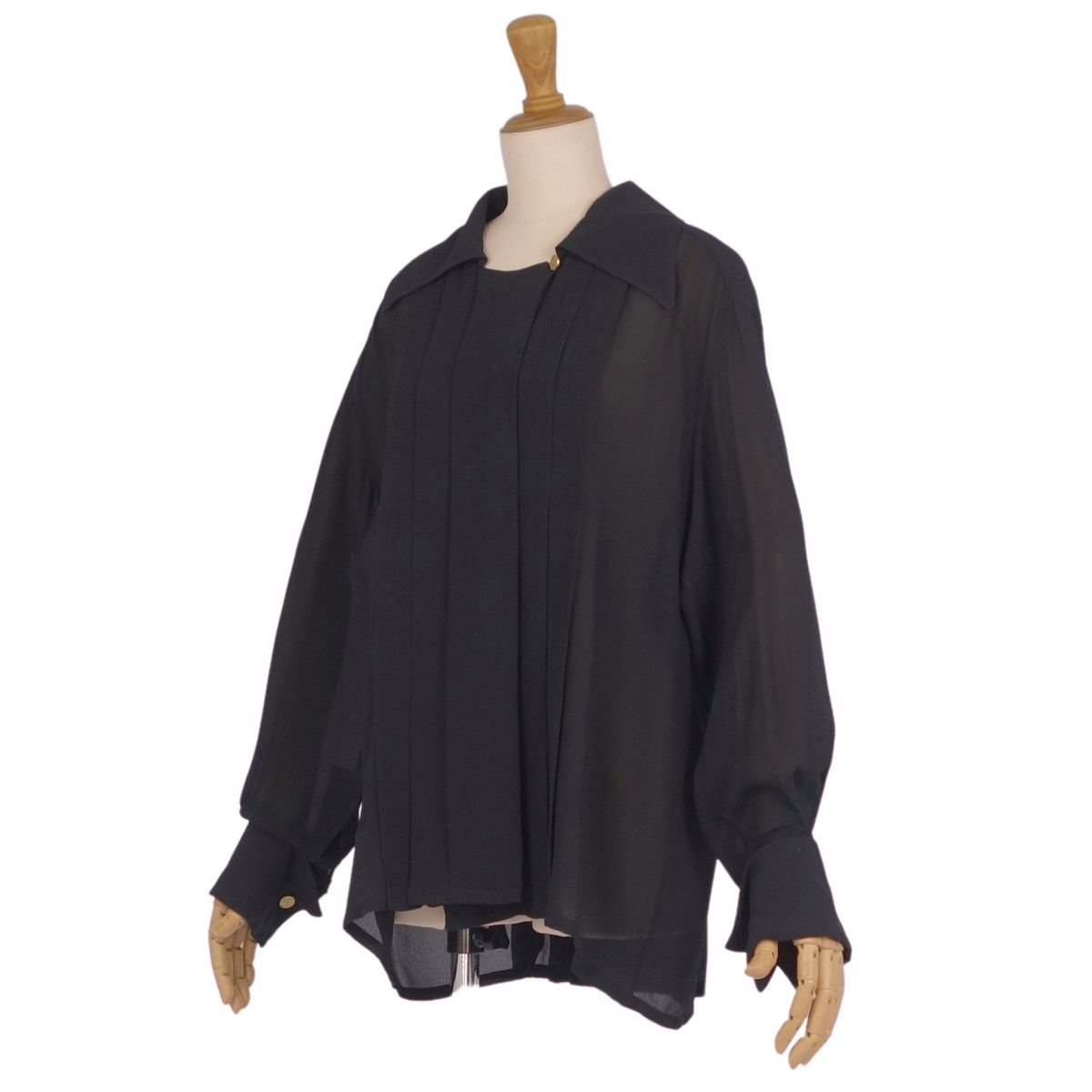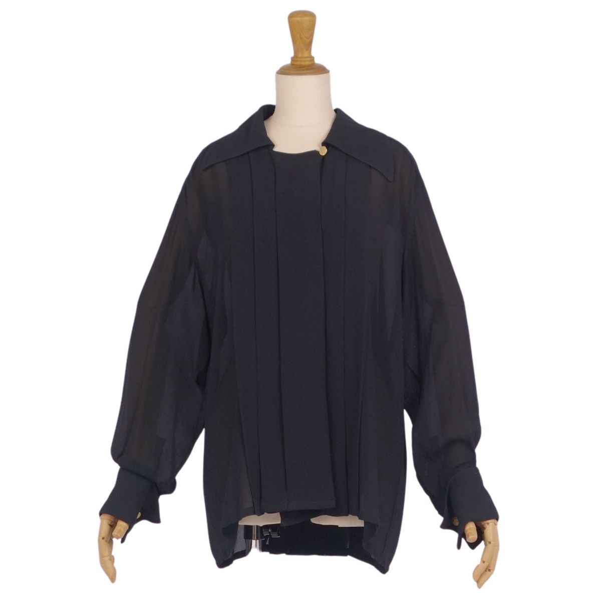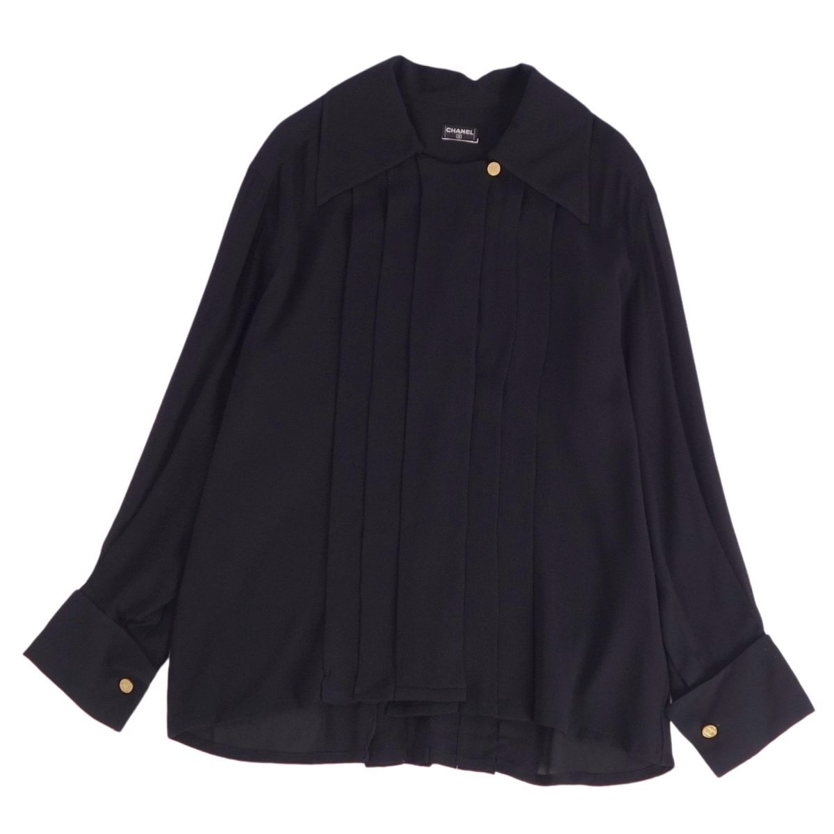 | 美品 Vintage シャネル CHANEL シャツ ブラウス ロングスリーブ 長袖 ココマークボタン シルク レディース M相当 黒 |