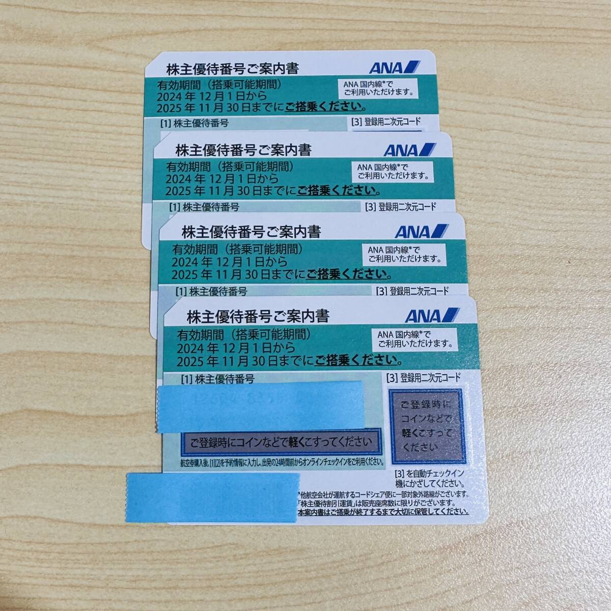[20411] ANA株主優待券 4枚セット 番号通知対応 有効期限2025年11月30日