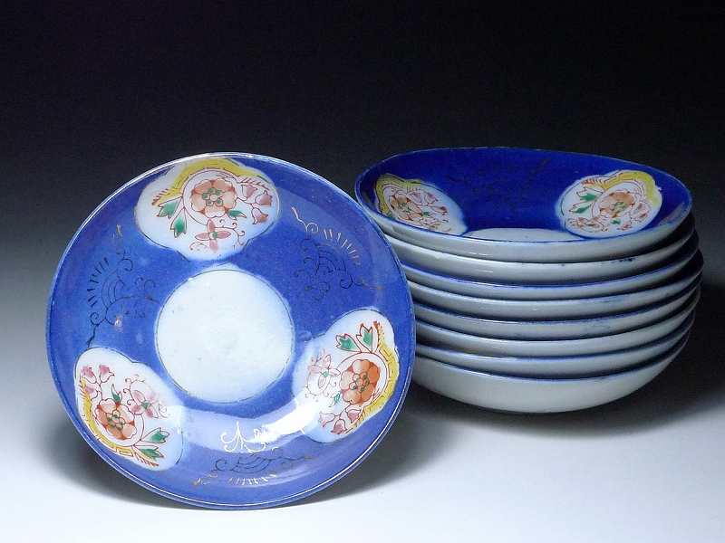 金彩色絵花唐草文小皿 9客セット 豆皿 銘々皿 骨董 陶芸 和食器 アンティーク ヴィンテージ