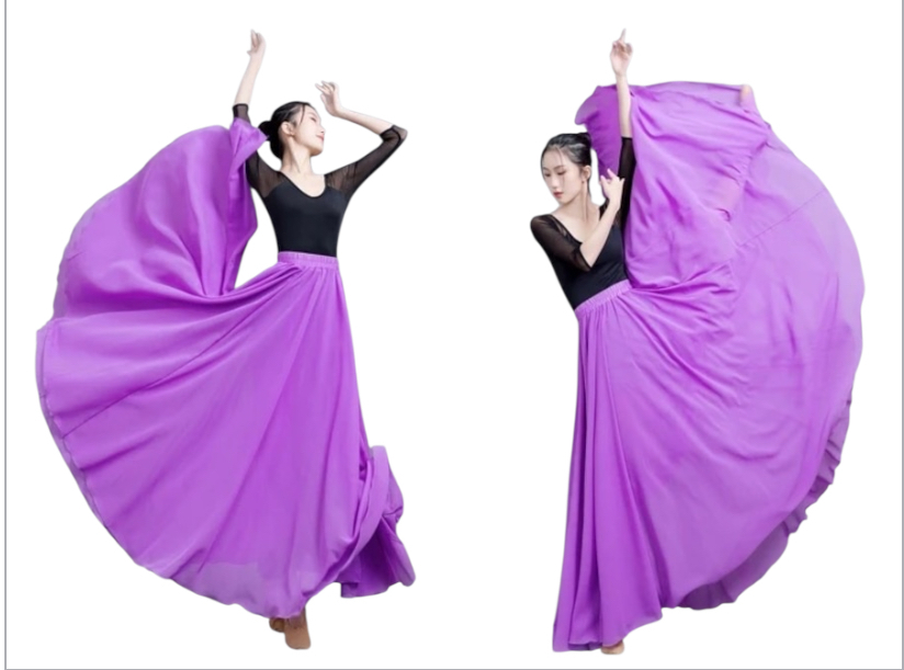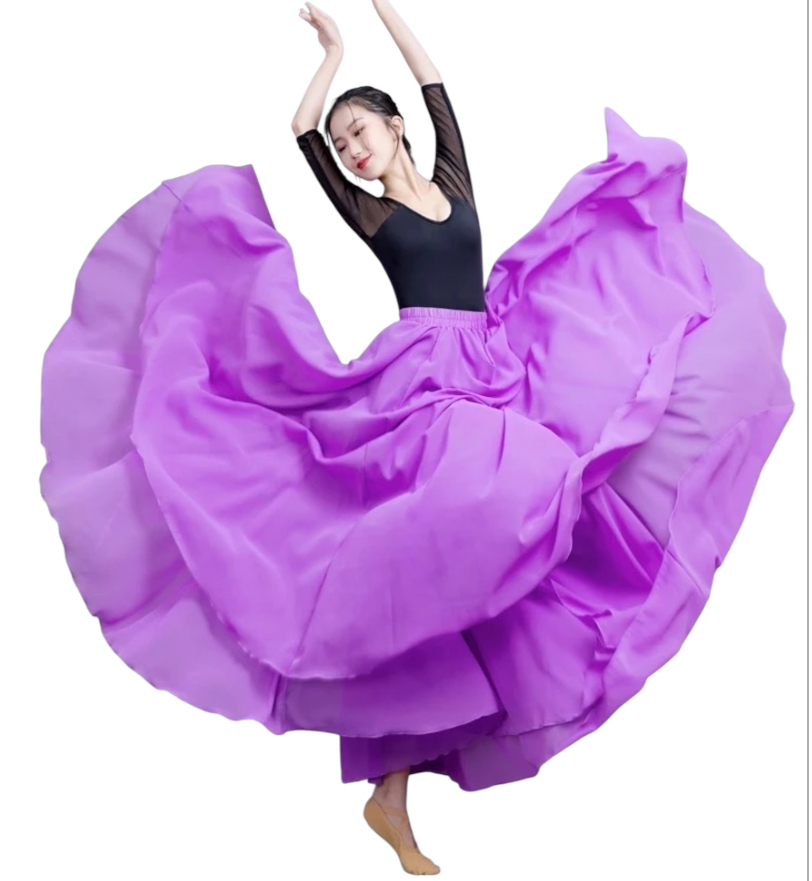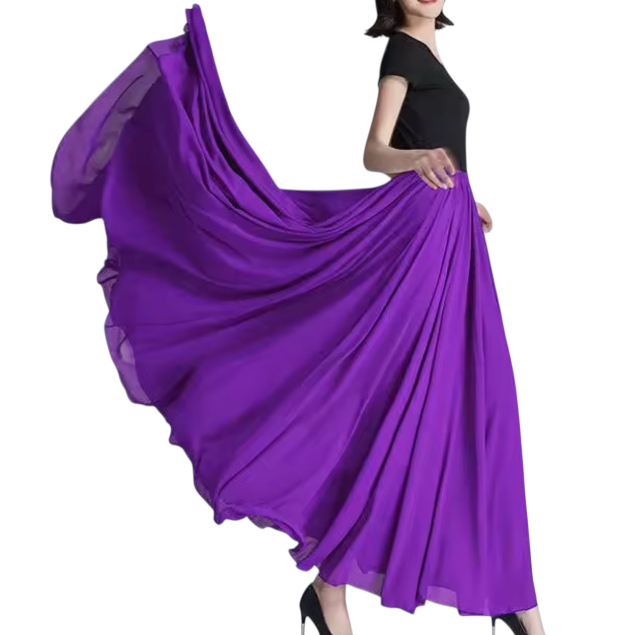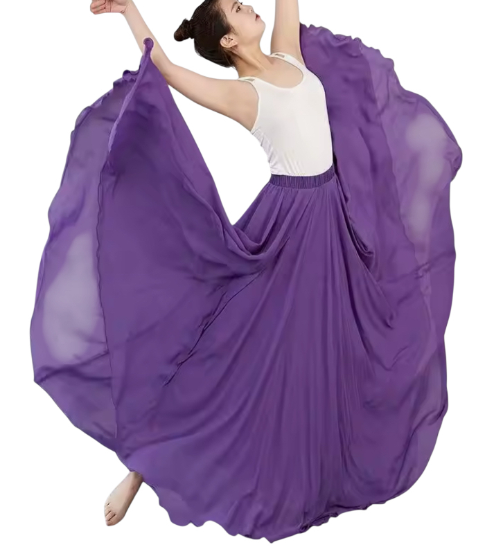 華やかなパフォーマンスから、日常のスタイルまで幅広く活躍する2層仕立ての720度シフォンスカート。鮮やかなパープルは「希望」「喜び」「魅力」を象徴し、動くたびにふんわりと広がるシルエットが女性らしさを一層引き立てます。軽やかなシフォン素材がしなやかに揺れ、ダンスの練習やステージ衣装はもちろん、街でのコーディネートにも映える万能デザイン。ブラウスやシンプルなトップスと合わせれば、トレンド感のあるモダンなシティスタイルにも。たっぷりとした720度のフレアが生み出す圧倒的なボリュームは、回転するたびに幻想的なラインを描き、見る人の視線を惹きつけます。ダンス初心者から経験豊富なダンサーまで、誰もが華やかに輝ける一枚です。お手入れは手洗いがおすすめ。長く美しいシルエットを保ちながらご愛用いただけます。サイズワンサイズ(フリーサイズ)スカート丈:約90cm※手動測定のため、2~3cmの誤差がある場合があります。おすすめポイント ? ダンスや舞台衣装だけでなく、日常使いにも最適 ? 動くたびにふんわりと広がる2層デザイン ? 鮮やかなパープルが華やかさを演出 ? 軽くて扱いやすいシフォン素材#ベリーダンス #ダンススカート #ジプシースカート #720度スカート #ロングスカート #フレアスカート #シフォンスカート #舞台衣装 #ステージ衣装 #レッスンウェア #ダンスファッション #パープルスカート #エレガントファッション #シティファッション #オリエンタルダンス #パフォーマンススカート #練習用スカート #おしゃれスカート #エスニックファッション