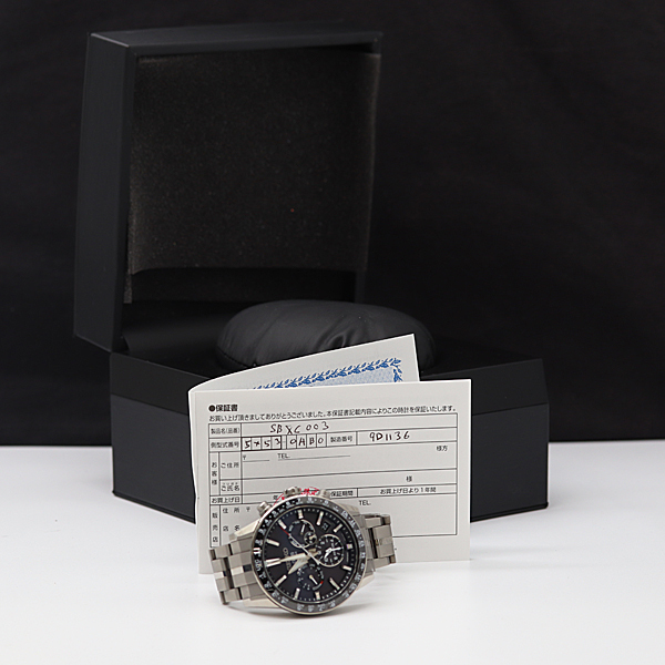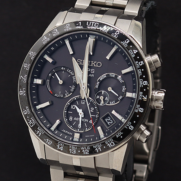 1円 保/箱付 稼働 良品 セイコー アストロン 5X53-0AB0 電波ソーラー グレー文字盤 クロノグラフ メンズ腕時計 5837700 8PRT MST