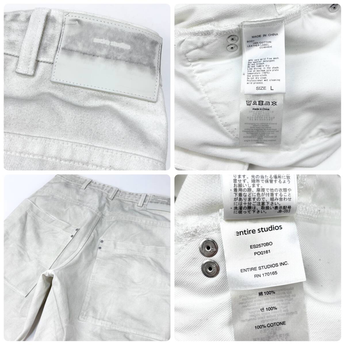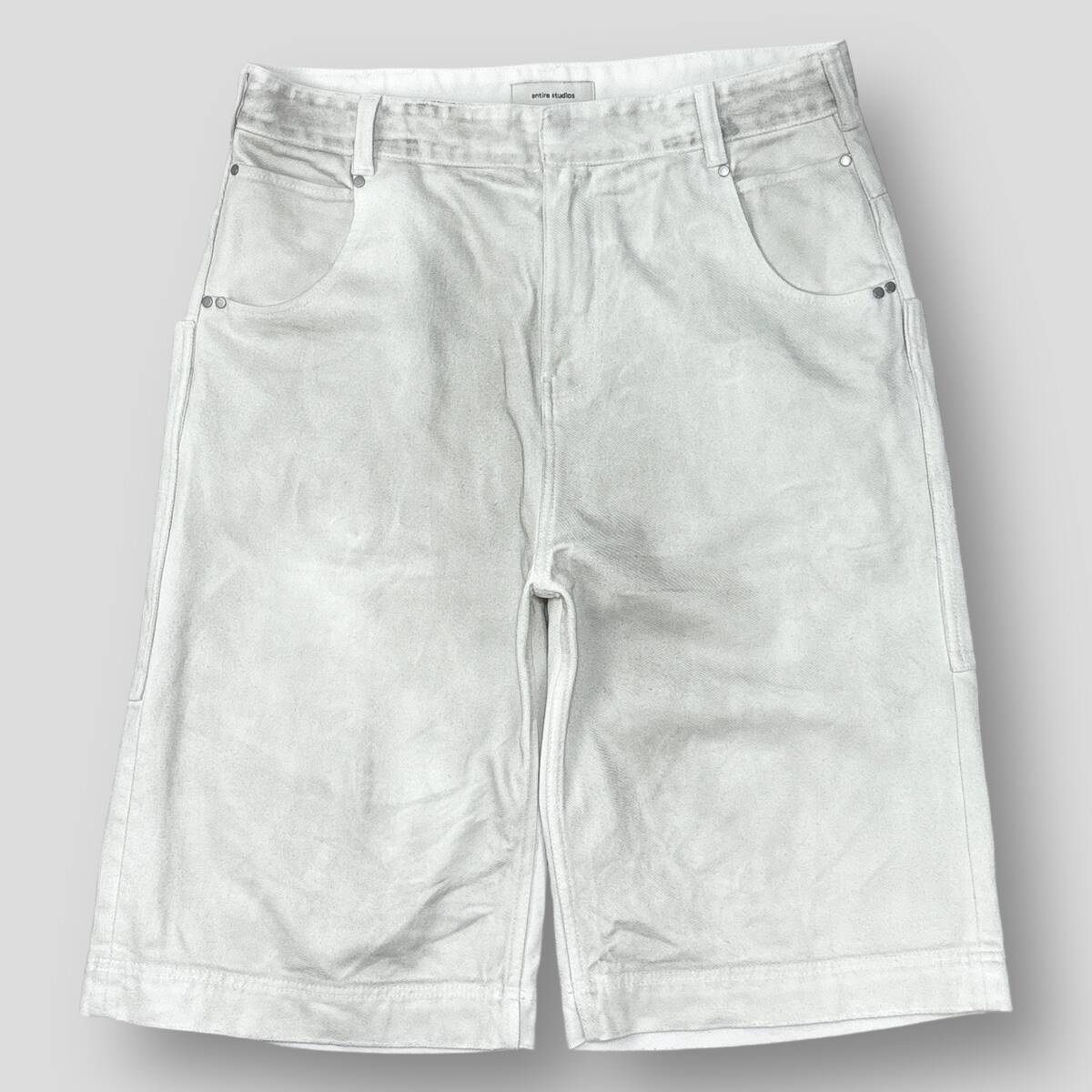 ENTIRE STUDIOS / エンタイアスタジオ 25SS D-SHORTS BONE ES2570BO L ホワイト 汚れ加工 ワイド デニムショーツ ショートパンツ SSM6106