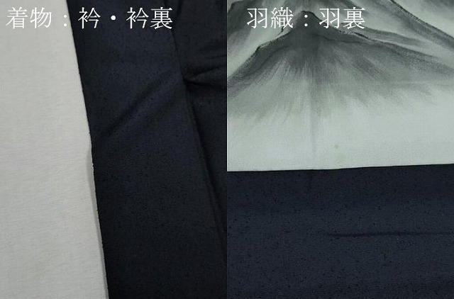 | 【正絹】 着物の状態は接写画像のように衿・衿裏に汚れがございますが その他特に目立ったシミ汚れなどもなく大変良い状態です。 羽織の状態は接写画像のように羽裏に薄い汚れがございますが その他特表地はに目立ったシミ汚れなどもなく大変良い状態です。 大変上質な逸品になります。 お安く出品致しますので、是非この機会にいかがでしょうか?