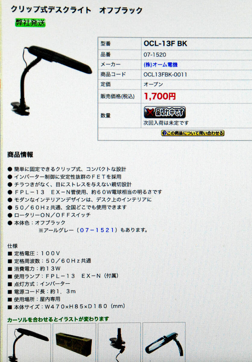 | ご覧頂きありがとうございます。 | オーム電気 クリップ式卓上蛍光灯スタンド「OCL-13F ブラック」/used sa |